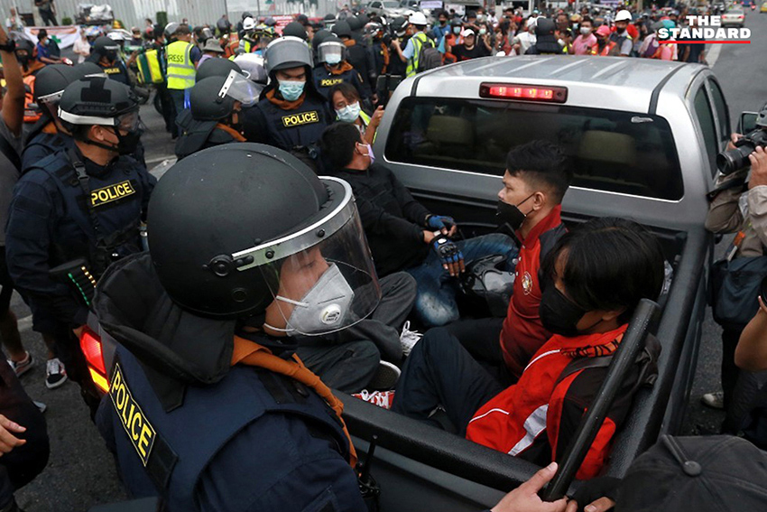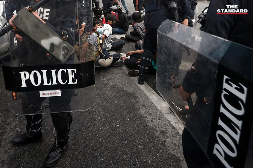 ขณะที่ พ.ต.อ. กฤษณะ พัฒนเจริญ รองโฆษกสำนักงานตำรวจแห่งชาติ (ตร.) ระบุถึงภาพรวมการชุมนุมที่สามเหลี่ยมดินแดง จับกุมผู้ชุมนุมได้จำนวน 15 คน ซึ่งจำนวน 5 คนเป็นเยาวชนอายุต่ำกว่า 18 ปี พร้อมตรวจยึดอุปกรณ์และรถจักรยานยนต์