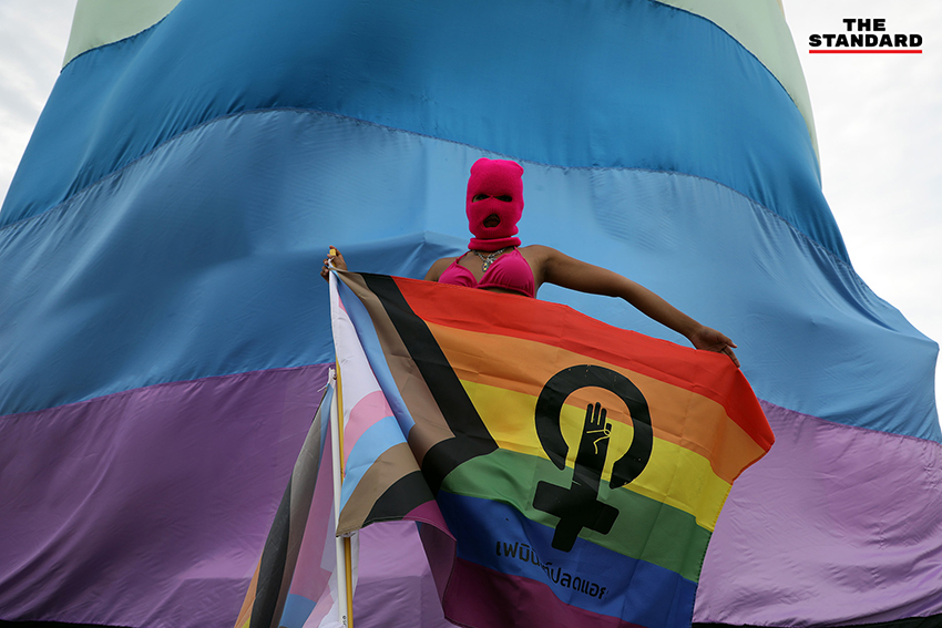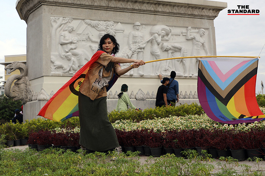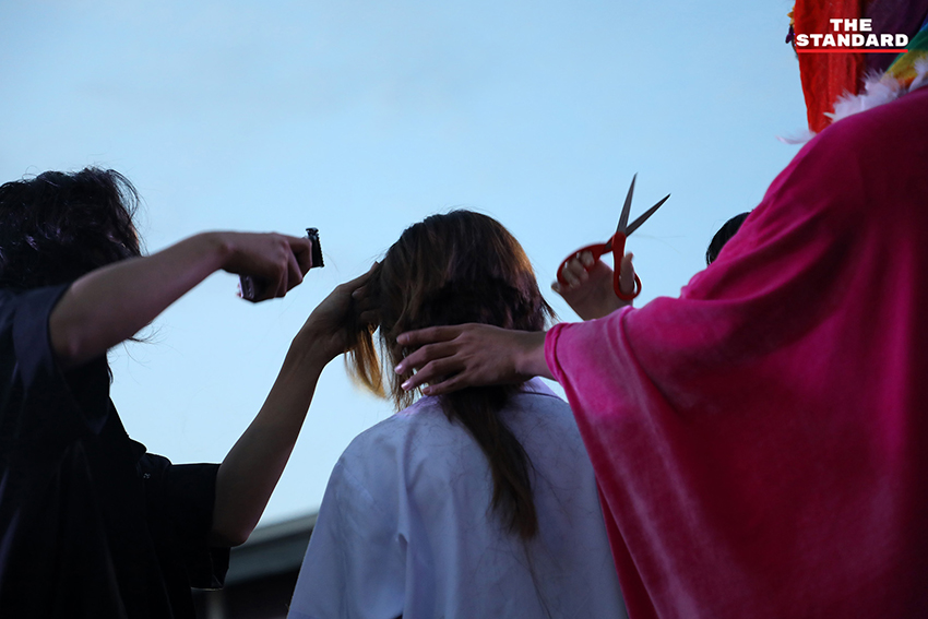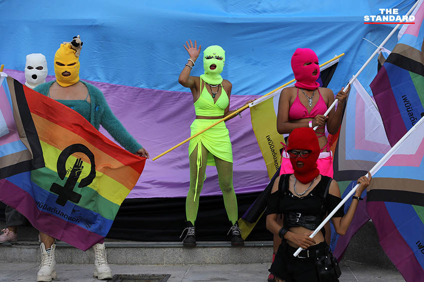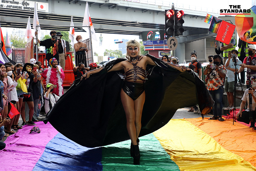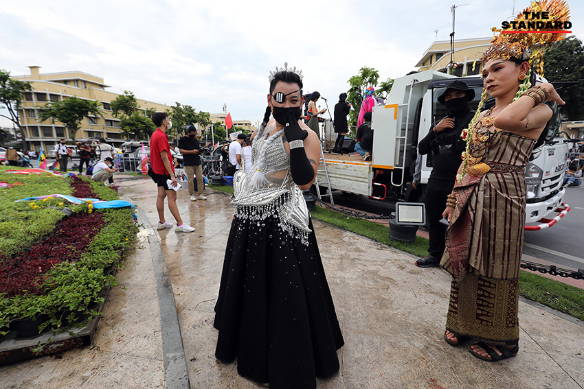 ขณะที่ ธนัตถ์ ธนากิจอำนวย หรือ ลูกนัท นักเคลื่อนไหวทางการเมือง ได้เดินทางมาเข้าร่วมกิจกรรมโดยแต่งกายเป็น ‘แดร็กควีน’