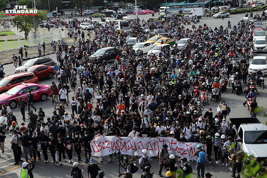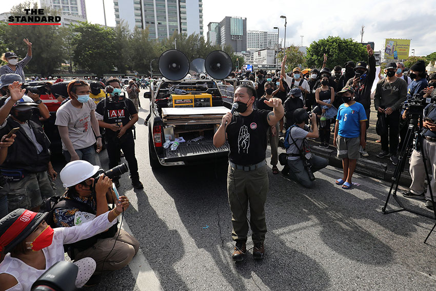 มวลชนทะลุฟ้าเลี้ยวซ้ายไปทางถนนดินแดง มุ่งหน้าบ้านประยุทธ์