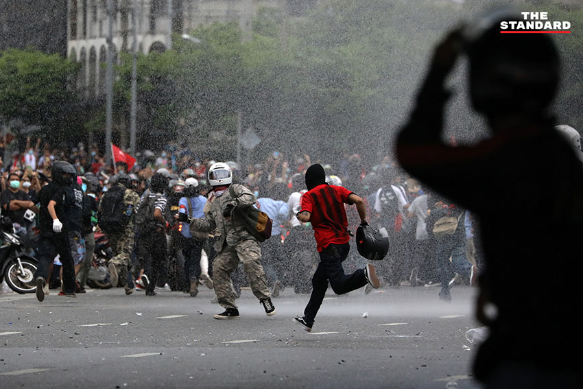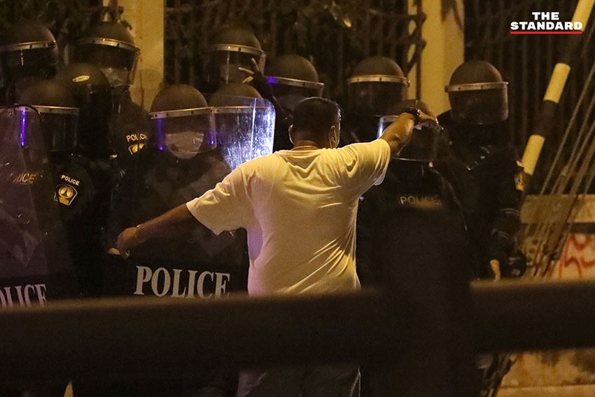 วันนี้ (15 สิงหาคม) ตั้งแต่เวลา 17.20 น. สื่อหลายสำนักรายงานผ่านไลฟ์ มีผู้ชุมนุมเดินทางไปยังบริเวณสามเหลี่ยมดินแดงและเกิดการปะทะกับเจ้าหน้าที่ ศูนย์ทนายความเพื่อสิทธิมนุษยชนรายงานด้วยว่า เจ้าหน้าที่ตำรวจยิงแก๊สน้ำตาข้ามตู้คอนเทนเนอร์ตอบโต้ผู้ชุมนุม ทำให้สถานการณ์เกิดการปะทะอย่างต่อเนื่อง มีการฉีดน้ำผสมแก๊สน้ำตาลงมาจากทางด่วน