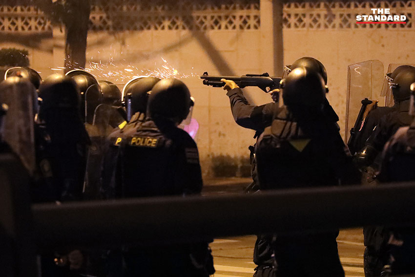 ศูนย์ทนายความเพื่อสิทธิมนุษยชน รายงานว่า เมื่อเวลา 20.30 น. นักข่าว Voice TV รายงานว่าตำรวจควบคุมฝูงชน (คฝ.) บุกเข้ามาที่พักประชาชนบริเวณแฟลตดินแดง ยิงกระสุนยางถูกผู้อยู่ในที่พักอาศัย และช่างภาพถูกยิงบริเวณขา