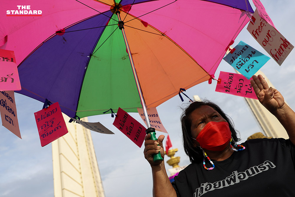 วันนี้ (28 สิงหาคม) กลุ่มทะลุฟ้านัดหมาย #ม็อบ28สิงหา ‘ความหวังและการต่อสู้ของประชาชน’ ที่อนุสาวรีย์ประชาธิปไตย โดยมีการตกแต่งอนุสาวรีย์ประชาธิปไตยด้วยผ้าสีรุ้ง รวมถึงยืนยันข้อเรียกร้องเดิมคือการขับไล่ พล.อ. ประยุทธ์ จันทร์โอชา นายกรัฐมนตรี ให้ออกจากตำแหน่ง