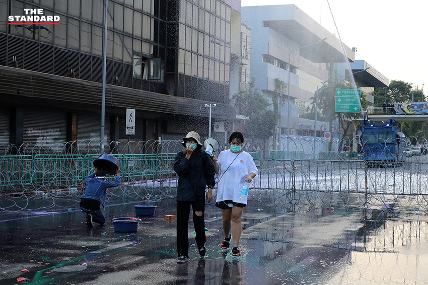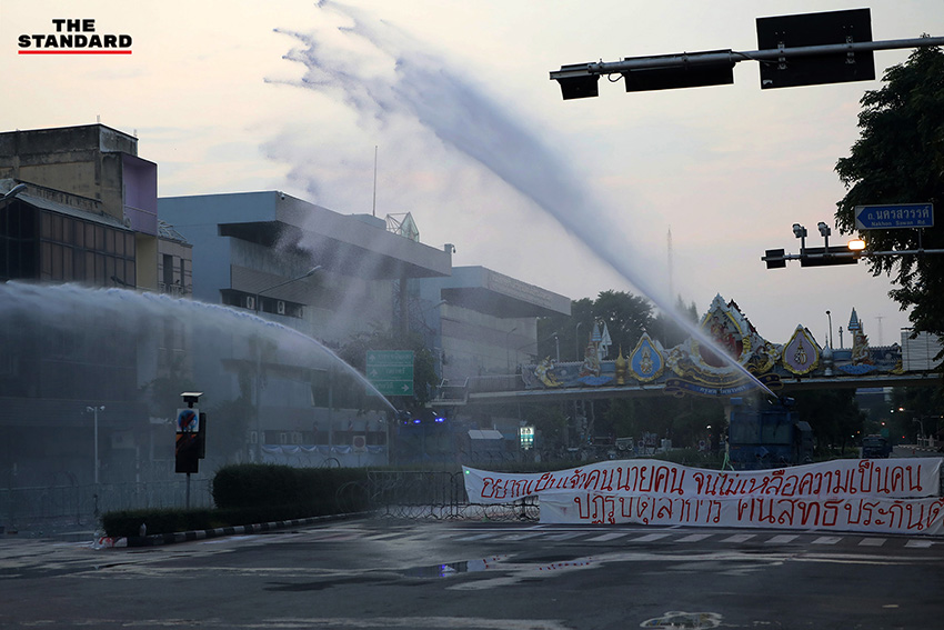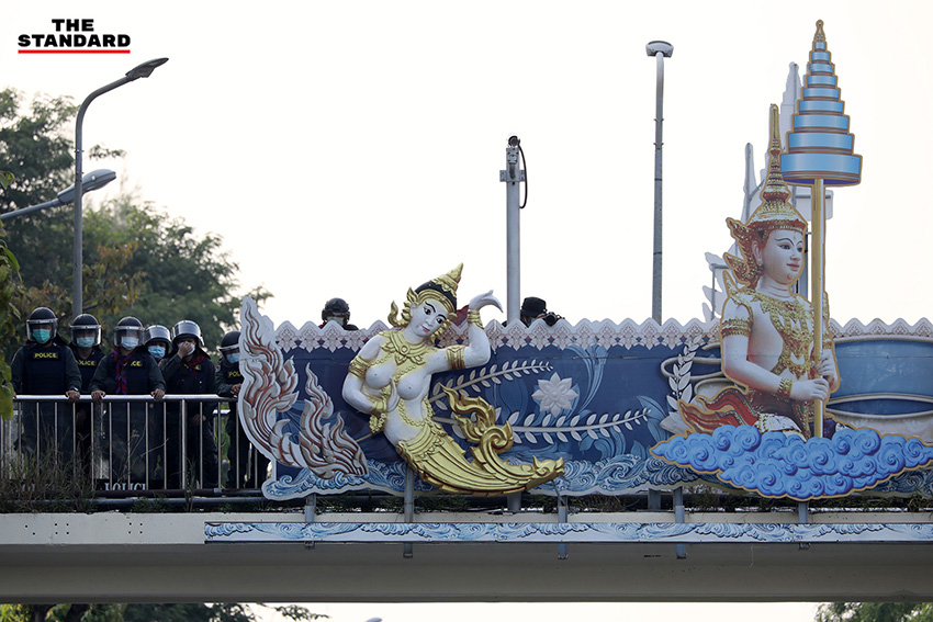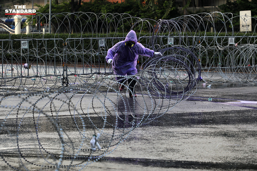ตำรวจควบคุมฝูงชน (คฝ.) ได้ตั้งแนวรั้วลวดหนามปิดถนนพิษณุโลก แยกนางเลิ้ง ที่จะมุ่งหน้าไปยังสะพานชมัยมรุเชฐ ใกล้เคียงทำเนียบรัฐบาลทั้งสองฝั่ง ขณะที่กลุ่มผู้ชุมนุมทะลุฟ้ารวมตัวอยู่อีกฝั่งหนึ่งของถนนพิษณุโลก พร้อมทั้งนำป้ายผ้าเขียนข้อความขับไล่รัฐบาลมาติดไว้ที่แนวรั้วลวดหนาม