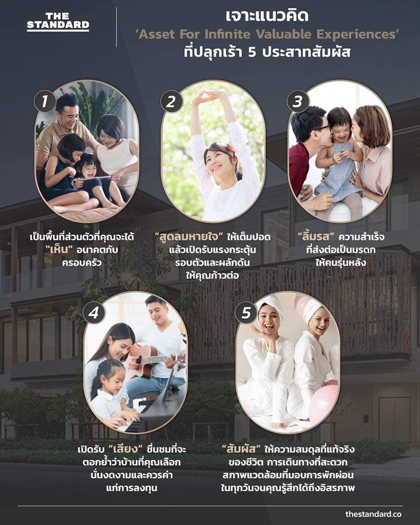 โดยชูจุดยืนและความแตกต่างในการพัฒนาโครงการของ แอสเซท ไฟว์ กรุ๊ป ภายใต้แนวคิด ‘Asset For Infinite Valuable Experiences’ ผ่านประสบการณ์ล้ำค่าที่จะปลุกเร้า 5 ประสาทสัมผัส ได้แก่