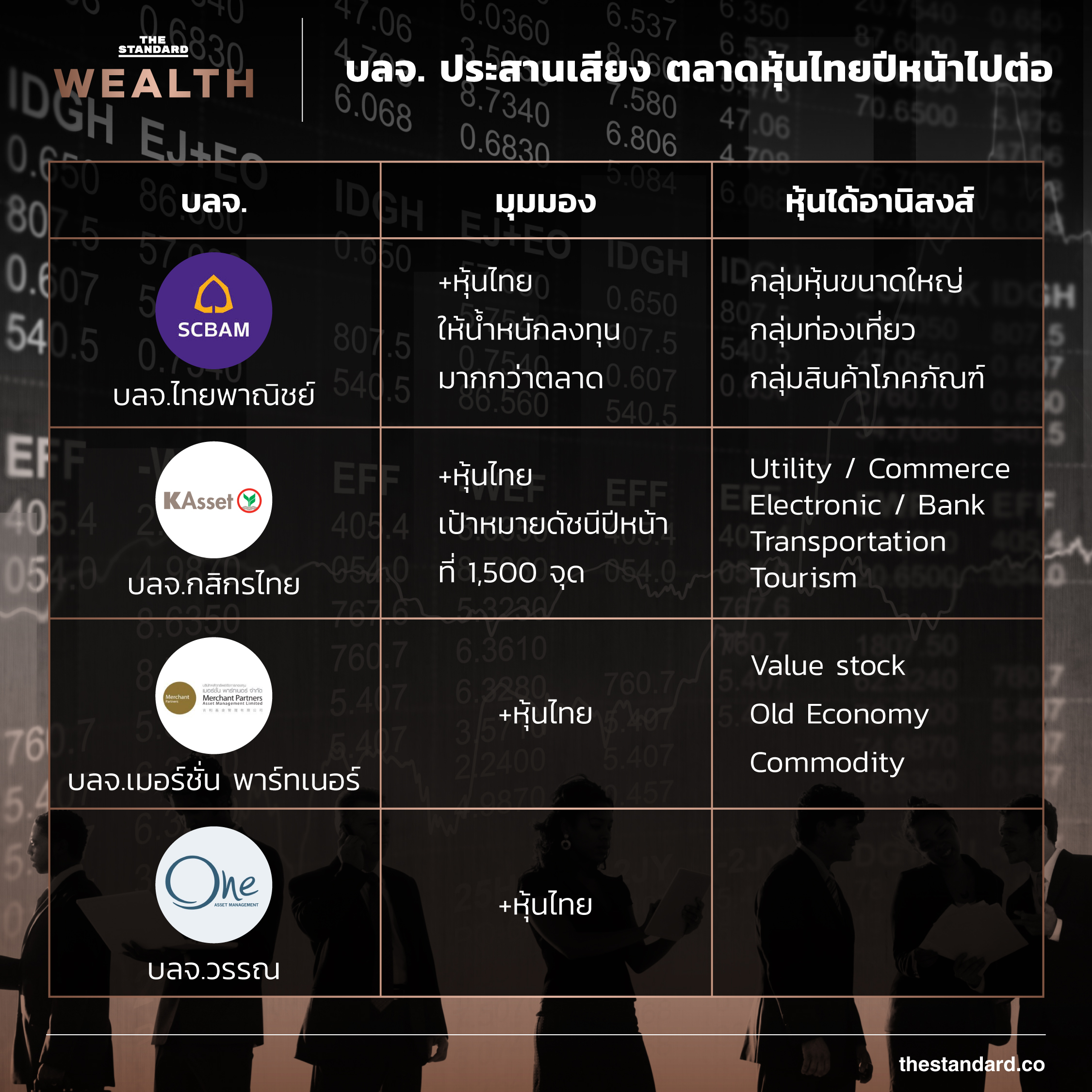 สำรวจความคิดเห็น ‘บลจ.’ ต่างระบุเป็นเสียงเดียวกันว่า ปีหน้าหุ้นไทยพุ่งต่อ รับ 2 อานิสงส์ ทั้งเศรษฐกิจโลกฟื้นและ Fund Flow เข้าตลาดหุ้น EM ระบุธุรกิจ ‘Old Economy’ ไม่หมดเสน่ห์