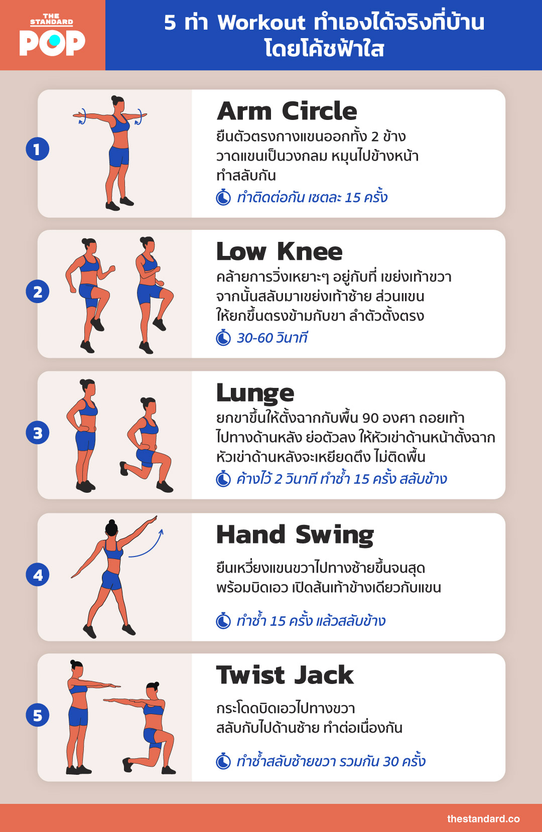 5 ท่า Workout ทำเองได้จริงที่บ้าน โดยโค้ชฟ้าใส