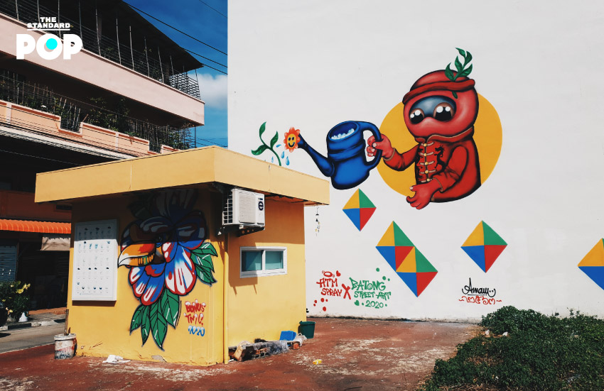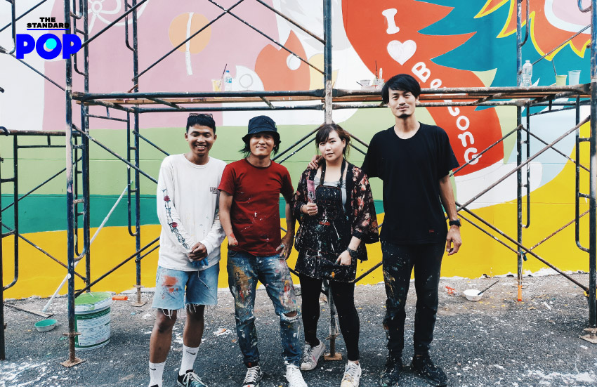 รวมไปถึงผลงานของเฮียป๊อก Pairoj และเพื่อนๆ ศิลปิน Preaw Prapha, Crazy, Jayoto และ Nola Nolee ที่มาฝากคาแรกเตอร์น่ารักๆ ไว้บนกำแพงเกือบ 10 เมตร