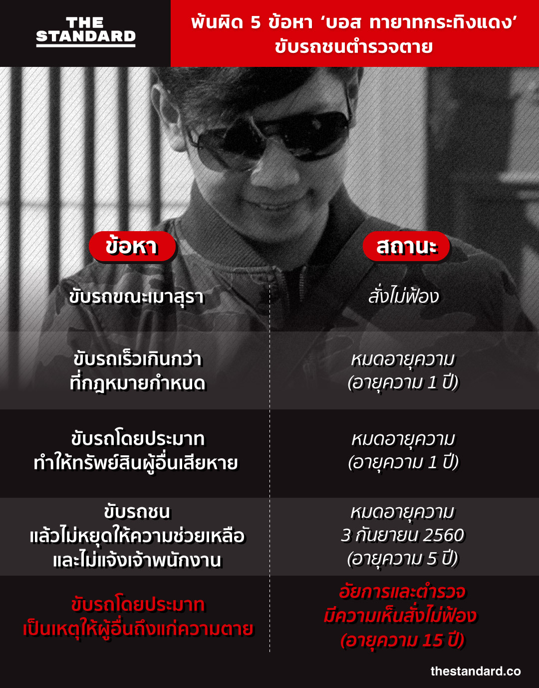 ปิดฉากคดีทายาทกระทิงแดงขับรถชนตำรวจเสียชีวิต โดยไม่สามารถนำผู้ต้องหามารับผิดทางกฎหมายได้เลยแม้แต่กระทงเดียว
