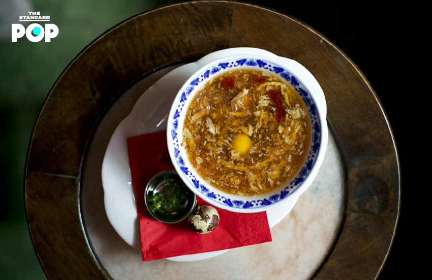 เริ่มต้นที่เมนูของกินเล่นอย่าง เผือกทอดซอสมาโยขิง (148 บาท) ที่ฉีกกฎการกินเผือกทอดแบบเดิมๆ จากเดิมที่เผือกทอดมักจะคู่กับซอสบ๊วย กลายเป็นเผือกทอดไส้มังสวิรัติที่กินคู่กับซอสมายองเนสขิงดอง แม้ขิงดองจะเป็นเครื่องเคียงที่ผู้คนมักจะเขี่ยทิ้งไปในจานข้าวหมูแดงหรืออาหารจีนจานอื่นๆ แต่เมื่อนำมาทำเป็นซอสมายองเนสขิงดองแล้วเข้ากันได้ดีทีเดียว ส่วนเมนูซุปที่น่าสนใจมีถึงสองเมนู ไม่ว่าจะเป็น ซุปเสฉวนไข่นกกระทา (148 บาท) ซุปรสเปรี้ยวหวานสไตล์เสฉวนที่เรียกน้ำย่อยได้ดีด้วยความเผ็ดเปรี้ยวของซอสพริกเผาถั่ว เสิร์ฟพร้อมไข่นกกระทาให้ตอกลงไปในซุปเอง และ ซุปใสไก่กังป๋วย (168 บาท) เมนูซุปหอยเชลล์แห้งที่เต็มไปด้วยสมุนไพรจีน ล้างความมัน เหมาะกับการซดร้อนๆ ก่อนกินอาหารจานหลัก