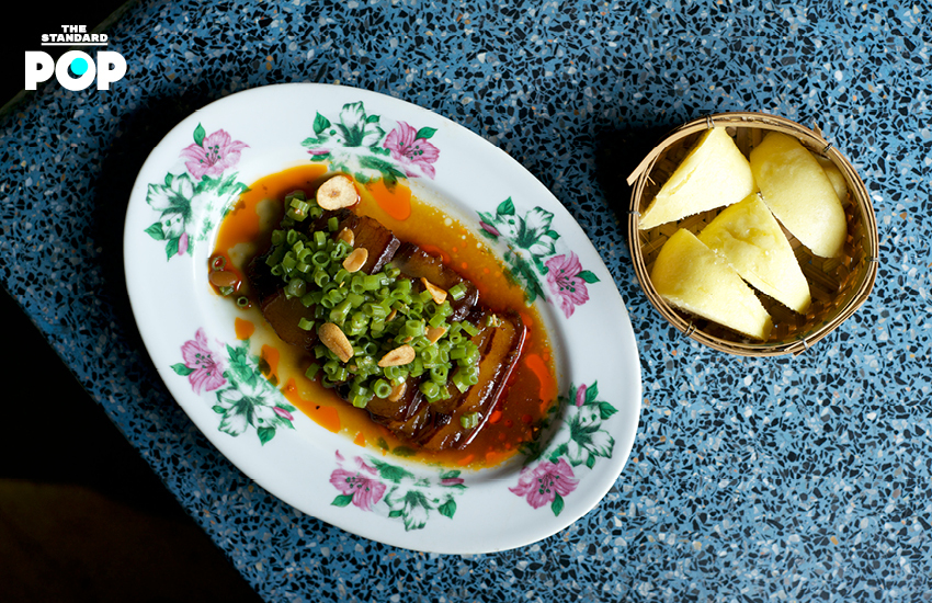 ในส่วนของเมนูอาหารจานหลักหนักท้องก็มี หมูตุ๋นหวานกับผักบุ้งเต้าเจี้ยว หมั่นโถวฟักทอง (248 บาท) หมูตุ๋นเกาหยุกที่เคยเป็นเมนูขายดีเมนูหนึ่ง ถูกนำมาสร้างสรรค์ในรูปแบบใหม่ เพิ่มเท็กซ์เจอร์ความกรุบกรอบของผักบุ้งจีนยำเต้าเจี้ยวด้วยน้ำมันพริกชวงเจียและพริกปั่นที่มีรสชาติเปรี้ยวตัดความเลี่ยนของหมูตุ๋นได้ดี