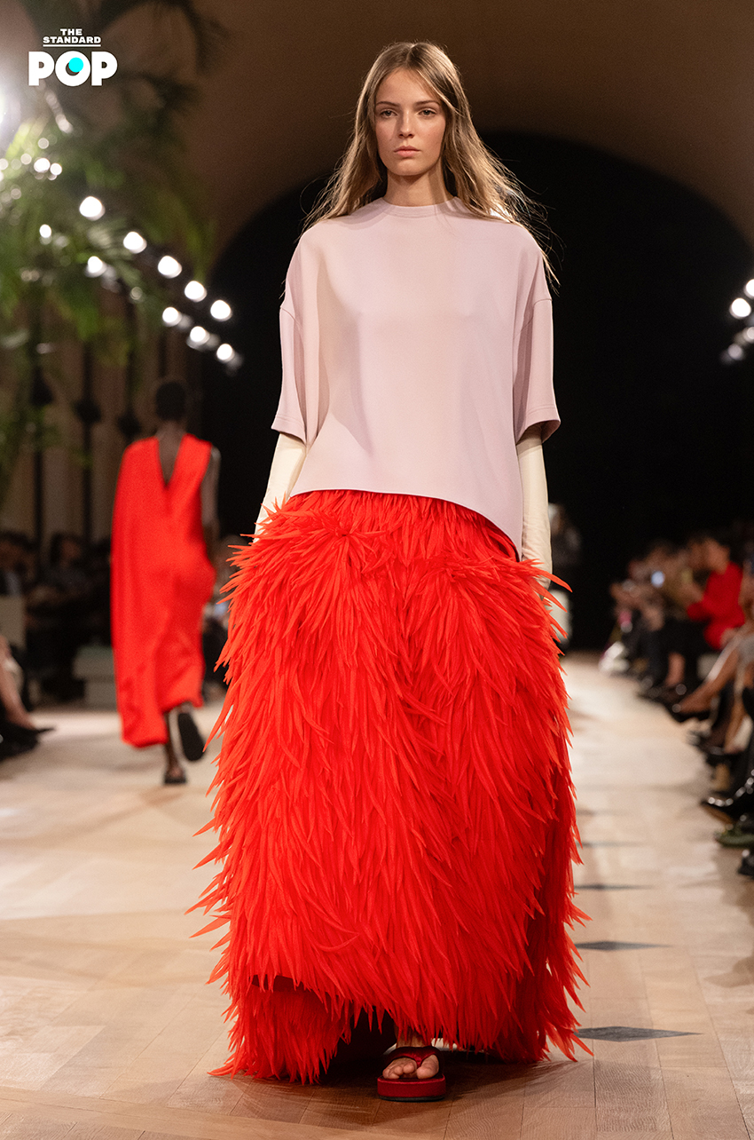 จนมาถึงโชว์ที่จัดในสำนักงานใหญ่ของ Kering ที่ปารีส แทนที่จะเป็นห้องเสื้อบนถนน George V เพื่อรองรับแขกของแบรนด์ทั้งหน้าเก่าและใหม่ไม่ว่าจะเป็น พีพี กฤษฏ์, Isabelle Huppert และ Anne Hathaway มิวส์ส่วนตัวของ Pierpaolo, Simone Ashley และแขกเซอร์ไพรส์ Meghan, Duchess of Sussex ที่เคยใส่ชุดของ Valentino เมื่อสมัยตั้งครรภ์ลูกคนแรก