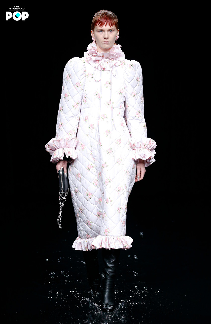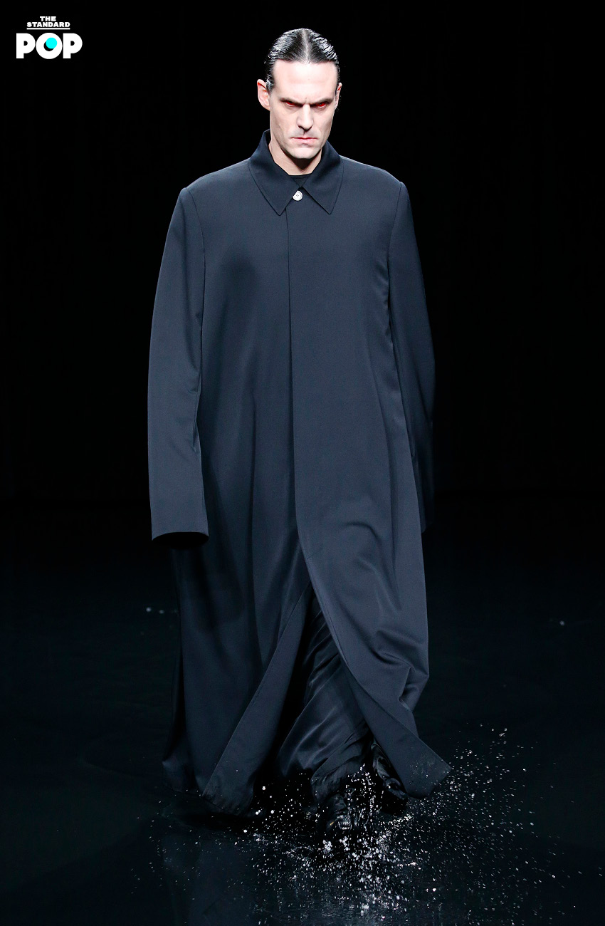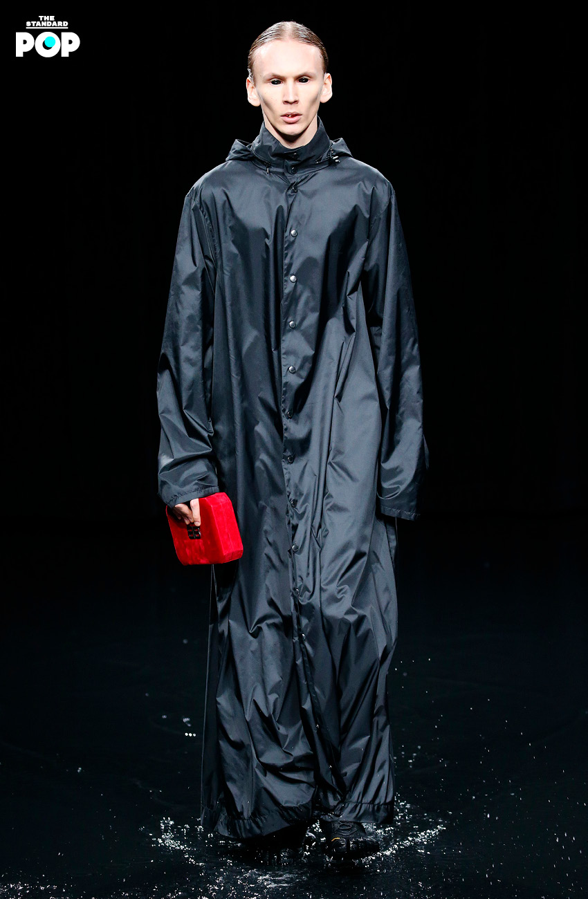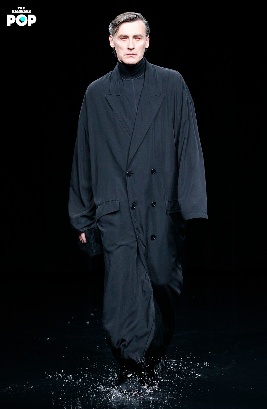 เด็มนา กวาซาเลีย ผู้อำนวยการฝ่ายสร้างสรรค์ของแบรนด์ชาวจอร์เจีย ที่เกิดและเติบโตมาในครอบครัวชาวคริสต์ ภายใต้คริสตจักรออร์โธดอกซ์ เขาจึงนำประสบการณ์ในวัยเด็กที่เขาใช้เวลาส่วนใหญ่ในโบสถ์ ไม่ว่าจะสารภาพบาป หรือสังเกตเครื่องแต่งกายของผู้คนในนั้น เราจึงได้เห็นชุดของนักบวชสีดำกำมะหยี่ ที่ครั้งหนึ่ง คริสโตบัล บาลองเซียกา เคยตัดให้สาวสังคมชั้นสูงใส่ไปโบสถ์ บนเวทีโชว์ที่จำลองซากปรักหักพังของสนามกีฬาที่ถูกน้ำท่วมจากภัยพิบัติทางธรรมชาติ พื้นรันเวย์ที่มีน้ำเจิ่งนอง สะท้อนเหมือนกระจกเงา และจอ LCD ที่ฉายภาพฟ้าผ่า และเพลิงอันโชกโชน โดยมีผู้ชมที่นั่งอยู่บนอัฒจันทร์