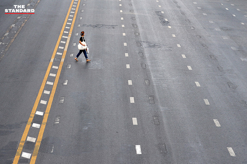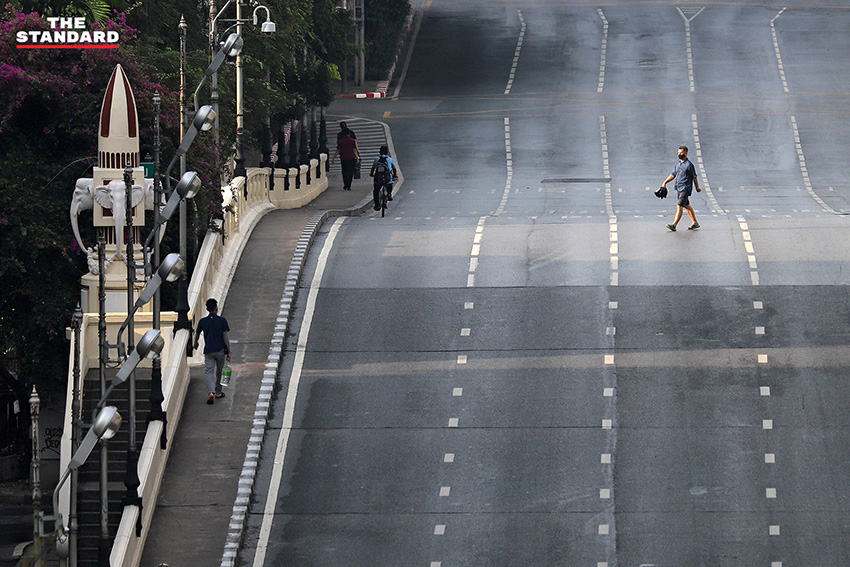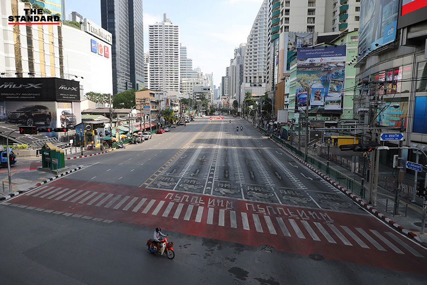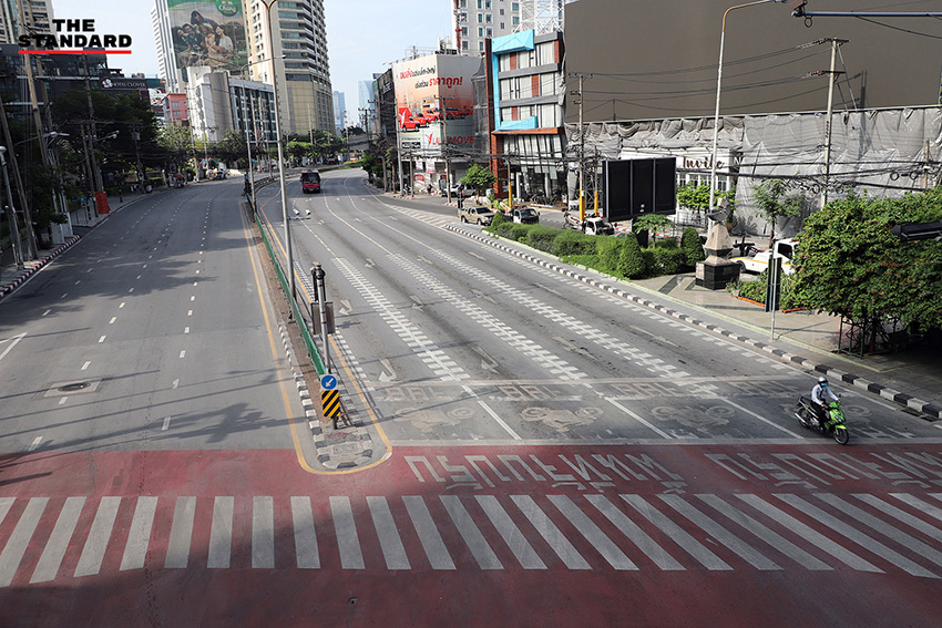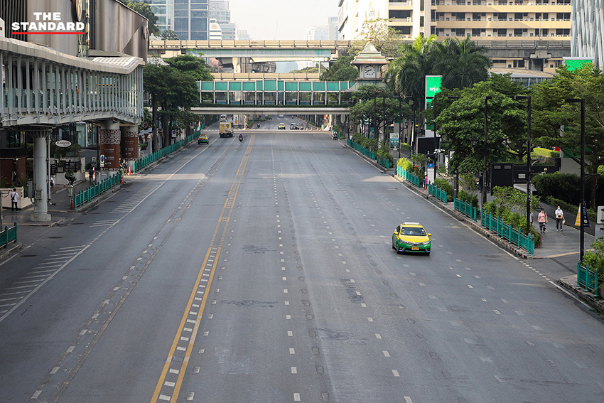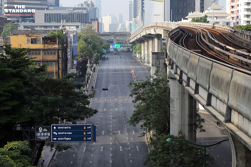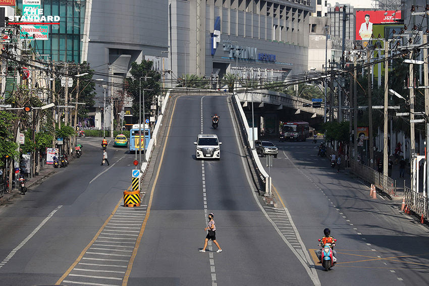 (13 เมษายน) สงกรานต์วันแรก THE STANDARD ออกสำรวจบรรยากาศในหลายจุดของกรุงเทพมหานคร ไล่ไปตั้งแต่ ราชเทวี ราชประสงค์ ประตูน้ำ ชิดลม เพชรบุรี และอโศก สิ่งที่พบเห็นเป็นข้อเท็จจริงดังภาพ ช่วงสายของวันนี้ถนนโล่ง การใช้ชีวิตของผู้คนในเมืองบางตา บางส่วนเดินทางไปต่างจังหวัดเพื่อเยี่ยมครอบครัวตามนัดหมายเดิม บางส่วนกังวลต่อสถานการณ์การแพร่ระบาด ขณะที่ร้านค้าหรือสถานที่หลายแห่งปิดบริการหยุดยาว
