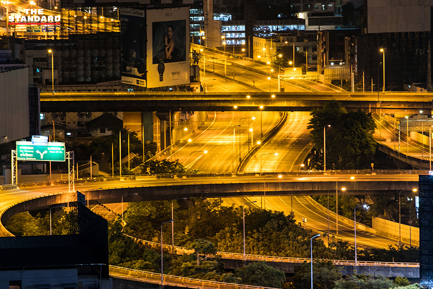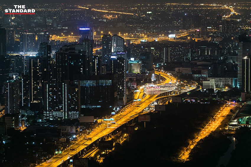 ช่างภาพ THE STANDARD เก็บภาพกรุงเทพฯ จากตึกใบหยกชั้น 81 ในช่วงเวลากำหนดเคอร์ฟิว ทุกอย่างเงียบสงัด ไม่มีรถ-คนเดินทางสัญจรตามท้องถนน กิจกรรมนอกเคหสถานหยุดสนิท แสงไฟของเมืองยิ่งส่องให้ความเงียบชัดเจน