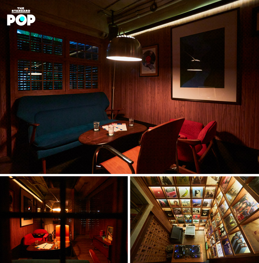 นุเล่าให้เราฟังว่า คอนเซปต์หลักๆ ของที่นี่เกิดจากการสร้างให้ ‘มาร์โค’ คือหนึ่งในคาแรกเตอร์เจ้าของบ้านสุดเท่ ผู้มี เจมส์ ดีน เป็นไอดอล เพื่อนเยอะและรักการสังสรรค์เป็นชีวิตจิตใจ ซึ่งก็พอจะเห็นภาพอย่างที่ว่า เพราะเมื่อเดินเข้ามาบรรยากาศของบาร์เหมือนห้องนั่งเล่นของเพื่อนที่มักจะเป็นบ้านศูนย์กลางเวลากลุ่มเพื่อนนัดสังสรรค์ ห้องนั่งเล่นที่ว่าตกแต่งอบอุ่นด้วยไม้ เฟอร์นิเจอร์ดีไซน์จัดจ้านงานออกแบบยุค Mid-Century ที่เขาสะสม รวมถึงแผ่นเสียงจำนวนมากจากวงที่เขาชื่นชอบ พร้อมเครื่องเล่นที่ต้อนรับดีเจรับเชิญสับเปลี่ยนไปในทุกๆ วัน