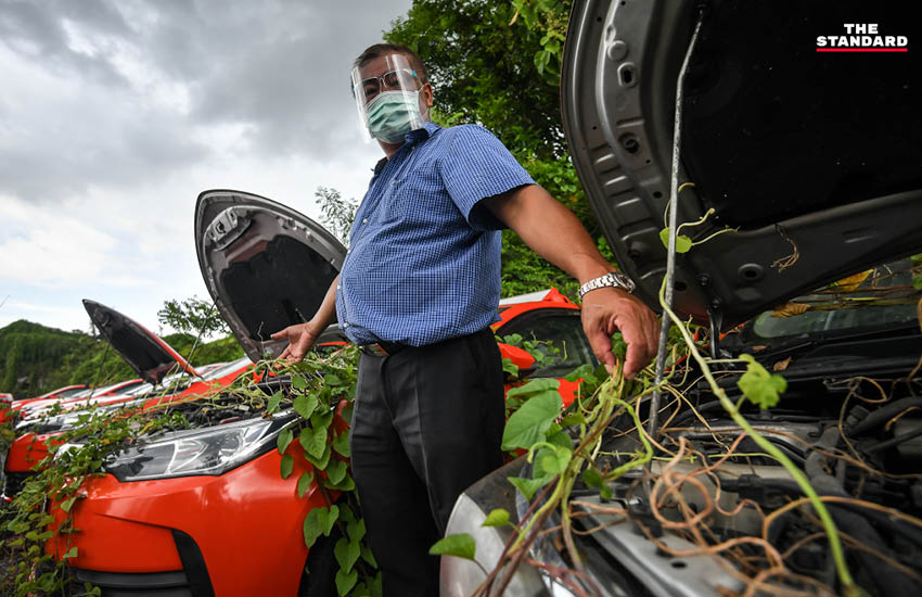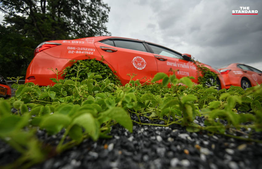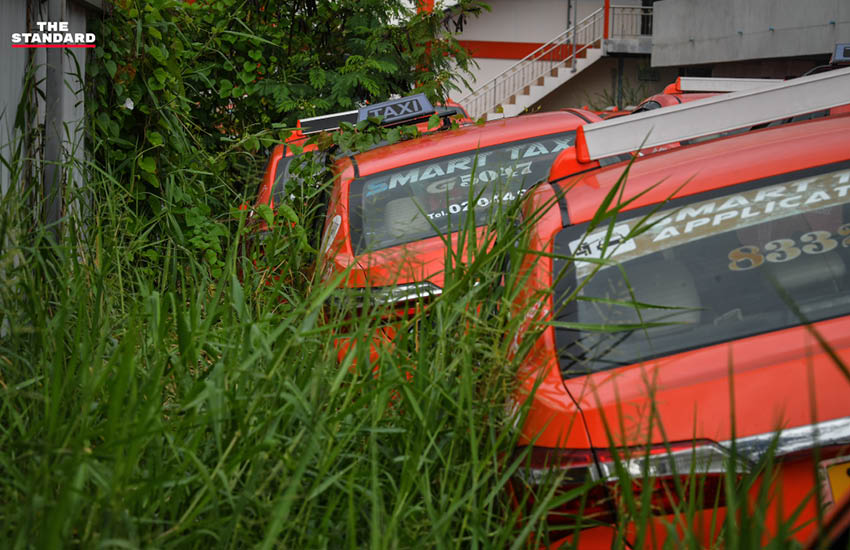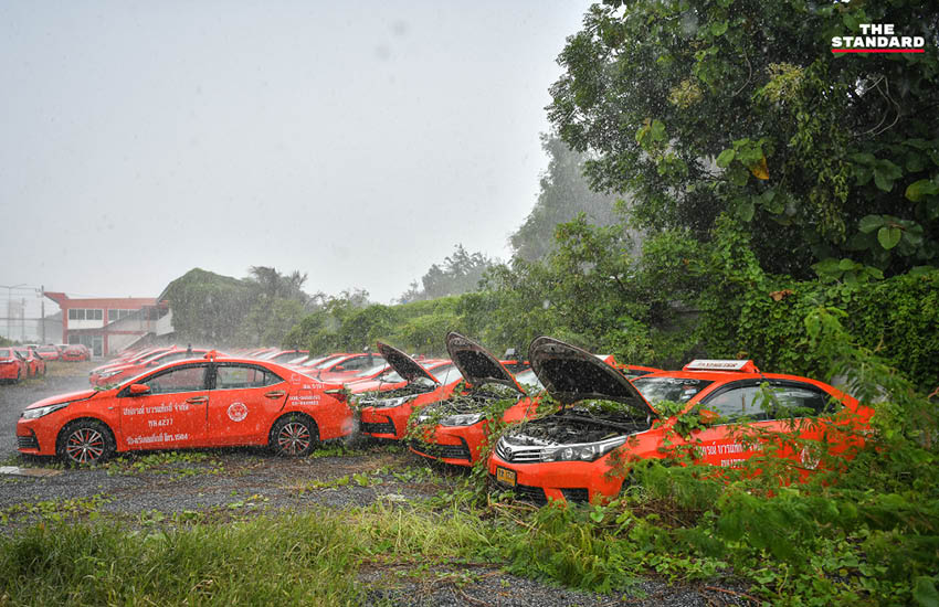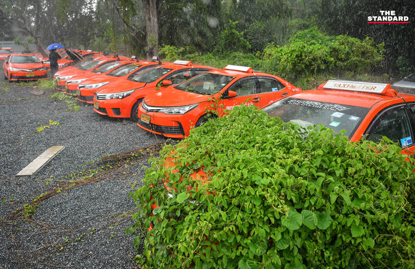 ‘ว่าง’ ไม่ใช่แค่ไฟแสดงหน้าแท็กซี่ แต่คือสถานะของรถแท็กซี่สีส้มกว่า 200 คัน ที่ว่างเว้นจากผู้ขับมาเป็นแรมปี จอดเรียงรายอยู่ในสภาพเครื่องยนต์พังและอะไหล่เสียหาย โดยมีเถาวัลย์และกอหญ้าปิดปกคลุม ภายในอู่สหกรณ์บวรแท็กซี่ ถนนพุทธมณฑลสาย 4 ตัดใหม่ ตำบลสวนหลวง อำเภอกระทุ่มแบน จังหวัดสมุทรสาคร