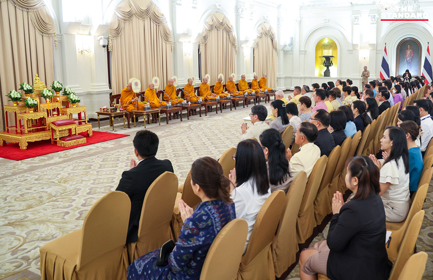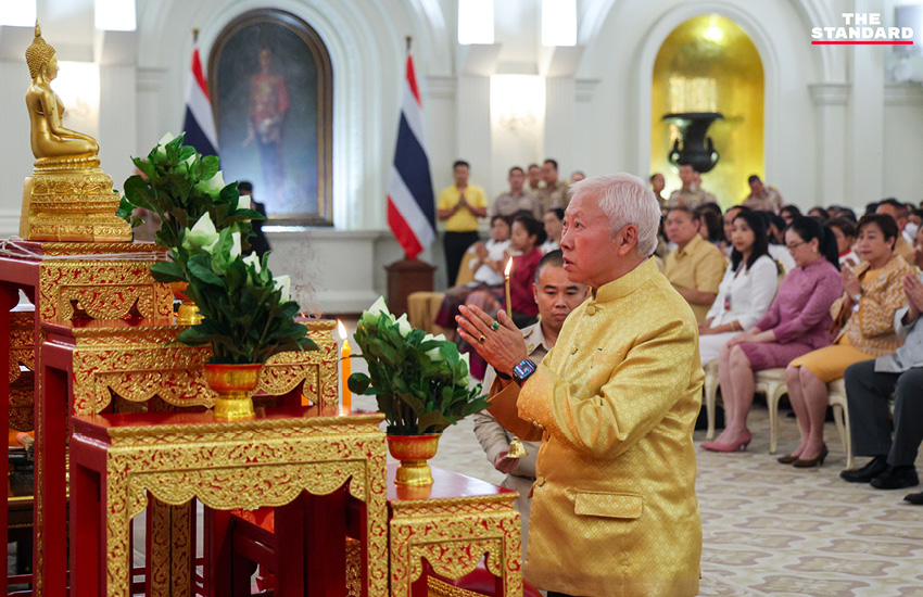 ทั้งนี้ ได้มีการนิมนต์สมเด็จพระมหาวีรวงศ์ และ คณะ รวม 10 รูป จากวัดราชบพิธสถิตมหาสีมาราม มาร่วมพิธีสวดมนต์ เพื่อความเป็นสิริมงคลของรัฐบาล