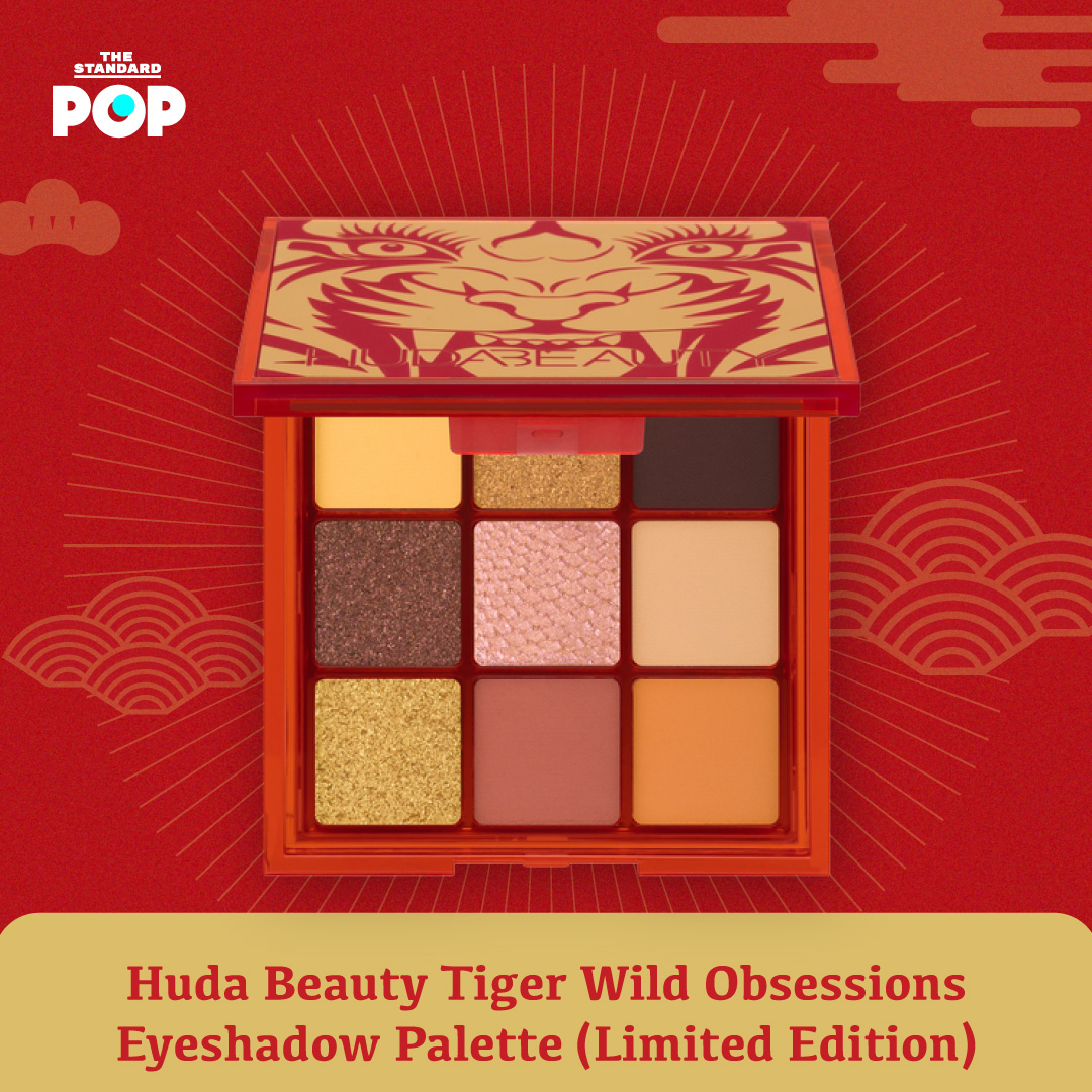 Huda Beauty Tiger Wild Obsessions Eyeshadow Palette (Limited Edition) พาเลตต์อายแชโดว์ที่ผสมผสานสีสันอันดุเดือดร้อนแรง นี่เป็นครั้งแรกด้วยที่ Huda Beauty ทำคอลเล็กชันเพื่อวันตรุษจีน บรรจุภัณฑ์มาพร้อมสีแดงและสีทองอันหรูหราอันเป็นสัญลักษณ์ และมีภาพประกอบพิเศษด้วยใบหน้าเสือที่ดูมีพลัง
