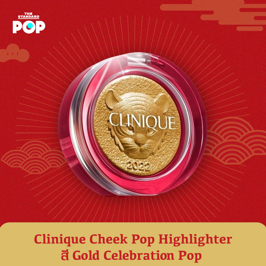 Clinique Cheek Pop Highlighter สี Gold Celebration Pop อยู่ในคอลเล็กชันใหม่ล่าสุด Lunar New Year Collection เป็นไฮไลต์ประกายสีทอง เพื่อแต่งผิวหน้าให้ดูมีมิติ สวยโกลวและฉ่ำอย่างเป็นธรรมชาติ เนื้อแป้งไฮไลต์ออกแบบมาเป็นรูปเสือที่ทรงพลังและสวยงามประณีต ถือเป็นอีกหนึ่งไอเท็มที่สาวๆ ไม่ควรพลาด