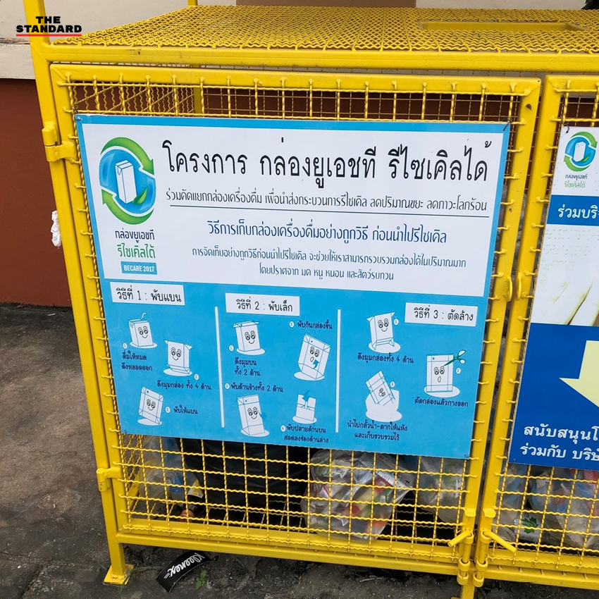 วัตถุประสงค์ตั้งต้นของโครงการก็เพื่อสร้างความตระหนักรู้และความเข้าใจให้กับชุมชนและพันธมิตรว่าทำอย่างไรจึงจะเปลี่ยนจาก ‘ขยะ’ ให้เป็น ‘วัสดุ’ เพื่อนำกลับมาใช้ได้อีกครั้ง และเน้นไปที่การสร้างเครือข่ายร่วมกับพันธมิตร เพื่อสร้างระบบการจัดเก็บกล่องเครื่องดื่มและนำกลับมารีไซเคิลอย่างยั่งยืน