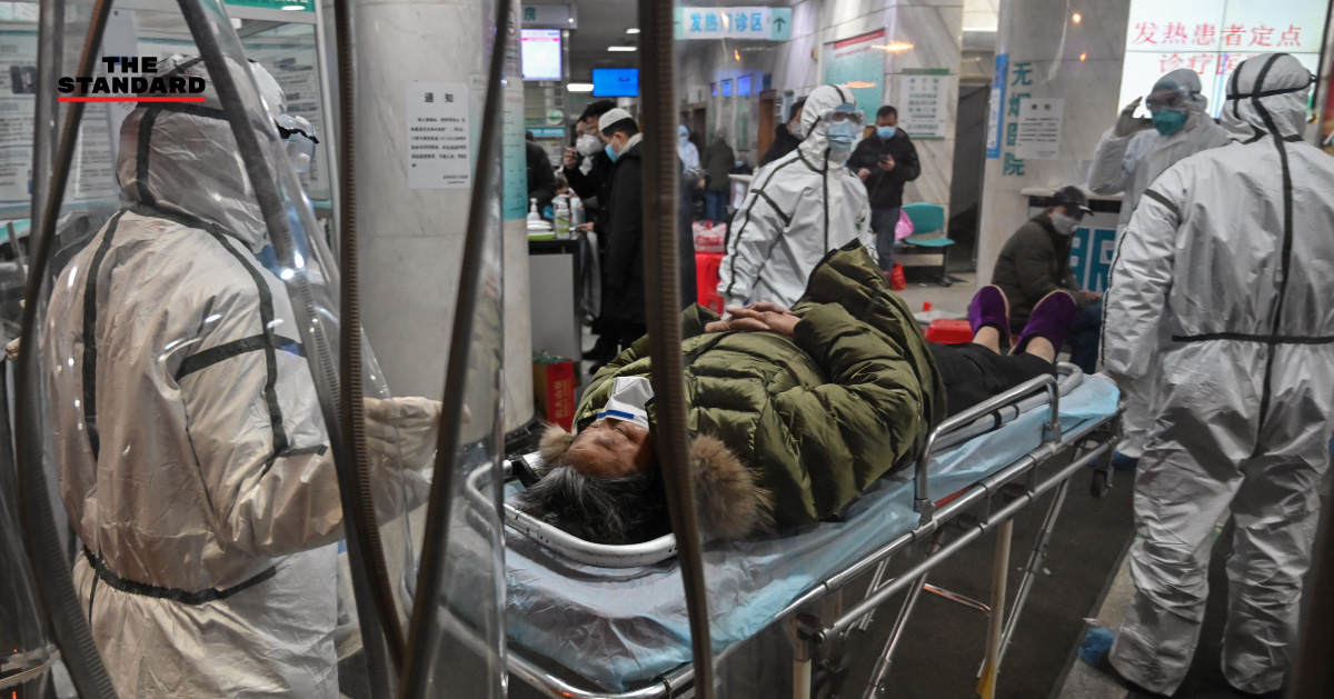 เจ้าหน้าที่ทางการแพทย์สวมชุดป้องกันการติดเชื้อ ดูแลผู้ป่วยที่ติดไวรัสโคโรนาสายพันธุ์ใหม่ ที่โรงพยาบาลกาชาดในเมืองอู่ฮั่น มณฑลหูเป่ย ขณะที่ยอดผู้เสียชีวิตจากไวรัสมรณะ (26 มกราคม) เพิ่มขึ้นเป็น 56 ราย และมีผู้ติดเชื้อมากกว่า 2,000 ราย