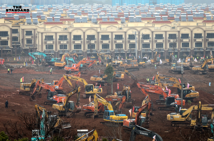 รถก่อสร้างหลายคันกำลังขุดดินเตรียมพื้นที่สำหรับก่อสร้างโรงพยาบาลฉุกเฉินขนาด 1,000 เตียงแห่งใหม่ในเมืองอู่ฮั่นของจีน เพื่อรองรับผู้ป่วยที่ติดเชื้อไวรัสโคโรนาสายพันธุ์ใหม่ 2019 โดยคาดว่าการก่อสร้างจะแล้วเสร็จภายในวันที่ 3 กุมภาพันธ์
