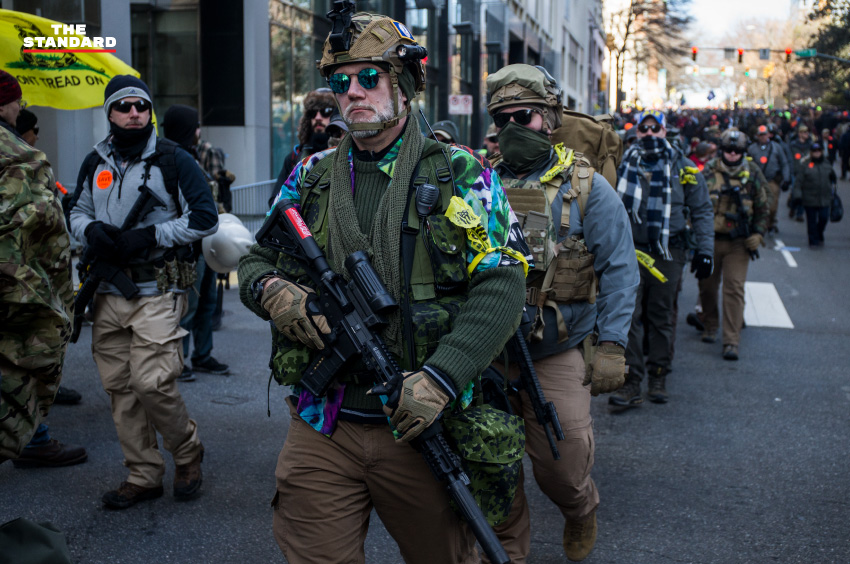 นักเคลื่อนไหวสนับสนุนสิทธิการครอบครองปืน เดินขบวนในกิจกรรมที่จัดโดยกลุ่มสันนิบาตป้องกันพลเรือนเวอร์จิเนีย ที่จัตุรัสแคปิตอล ในเมืองริชมอนด์ รัฐเวอร์จิเนีย ประเทศสหรัฐอเมริกา โดยในช่วงการเลือกตั้งปีที่แล้ว ราล์ฟ นอร์แธม ผู้ว่าการรัฐเวอร์จิเนีย ได้ประกาศให้คำมั่นกับประชาชนว่าจะผลักดันกฎหมายควบคุมอาวุธปืนในปี 2020 ซึ่งรวมถึงการควบคุมการซื้อปืนพก แบนอาวุธแบบที่ทหารใช้และอุปกรณ์เก็บเสียง แต่ก็มีประชาชนส่วนหนึ่งที่ไม่เห็นด้วย