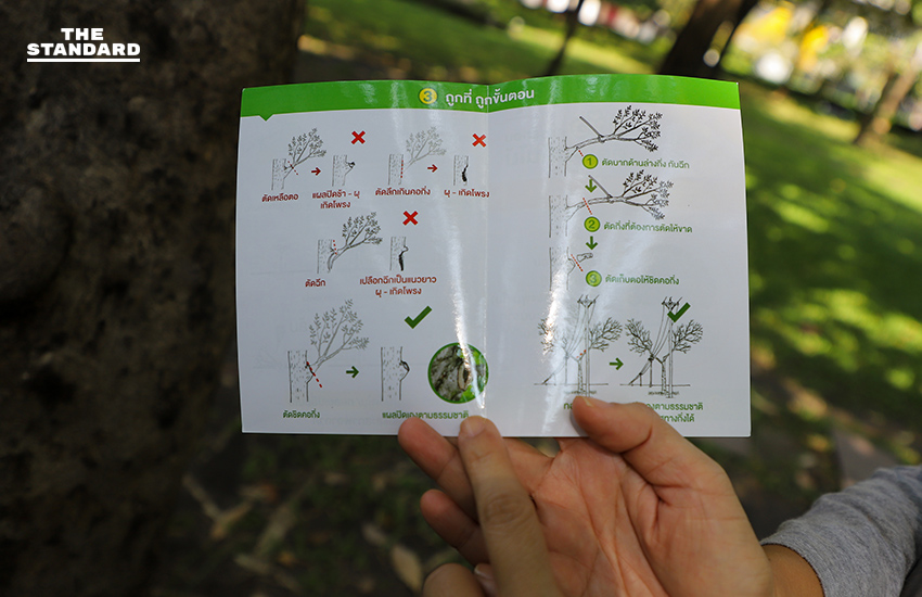 คนดูแลโดยตรงคือ กทม. ซึ่งส่วนใหญ่ก็แบ่งเป็นแต่ละเขต สิ่งที่เราพยายามทำคือ ทุกปีเราจะพยายามเอาเจ้าหน้าที่ของ กทม. มาฝึกด้วยกัน มีหลักสูตรอบรมที่ช่วยกันจัด ซึ่งแทบไม่ได้ใช้งบของ กทม. เลย เราก็หาสปอนเซอร์ข้างนอกมาช่วยกันดูแลค่าใช้จ่ายต่างๆ ถ้ามีโอกาสก็ไปติดตามผลบ้าง แต่ข้อสำคัญคือ ถ้าเรามีประกาศข้อกำหนดการดูแลต้นไม้ขึ้นมาแล้วผู้บริหาร กทม. ประกาศจริงจัง แล้วตอนนี้ กทม. กับเราก็ร่วมกันไปตั้งองค์กรหนึ่งชื่อว่า สมาคมรุกขกรรมไทย เป็นสมาคมวิชาชีพเรื่องอาชีพดูแลต้นไม้เป็นแห่งแรกของไทย มีจัดสอบเพื่อออกใบประกาศให้คนที่เป็นรุกขกรอาชีพ กทม. มีแล้วนะคะ คนแรกของประวัติศาสตร์ กทม. เลย ซึ่งเดี๋ยวเขาจะไปรับใบประกาศในงานนี้ (ยิ้ม) ฉะนั้น มันจึงเป็นประวัติศาสตร์ยุคใหม่ของ กทม. จากที่คุยกันไม่รู้เรื่อง ฉันจะตัดต้นไม้แบบนี้ ก็กลายเป็นว่าส่งเจ้าหน้าที่มาสอบ แล้วหวังว่าน้องคนนี้จะกลายเป็นครูฝึกให้คนอื่นใน กทม. ด้วยนะ เราก็เห็นว่าเขาพิถีพิถัน ใช้ความรู้ และทำด้วยใจรัก ซึ่งนี่แหละเป็นความเปลี่ยนแปลงที่น่าขนลุกว่าเห็นผลอยู่ในระดับหนึ่ง