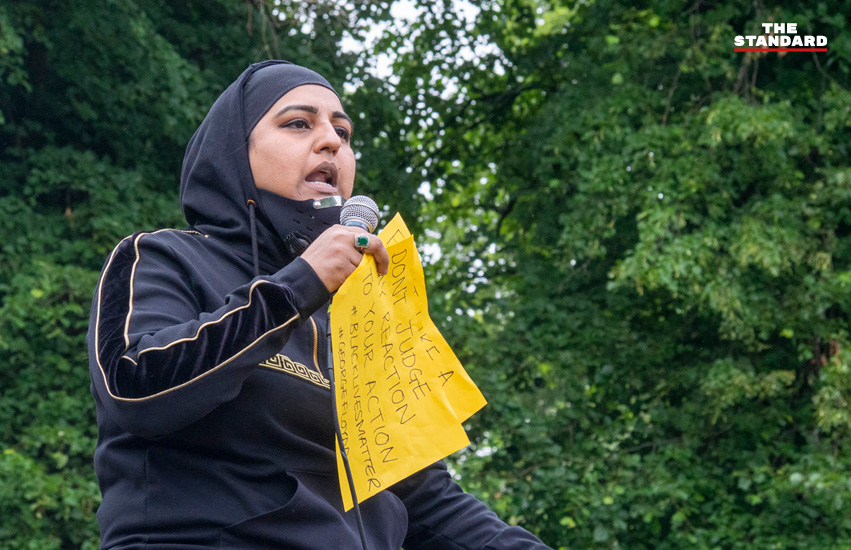 “อภิสิทธิ์ของคนผิวขาวมีอยู่จริง” คือคำพูดบนเวทีของ Neelufar Adam หญิงมุสลิมชาวบริติชผู้มีเชื้อสายเอเชียวัย 35 ปีที่ขึ้นปราศรัยในวันนี้ เธอบอกว่า เธอเองก็ผ่านประสบการณ์การถูกเหยียดสีผิวเมื่อครั้งเธอมีอายุเพียง 13 ปี โดยการถูกสั่งให้ลุกจากที่นั่งบนรถประจำทางในเมืองนี้เพื่อให้คนผิวขาวได้นั่ง และเมื่อเธอปฏิเสธ เธอก็ถูกทำร้าย