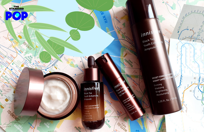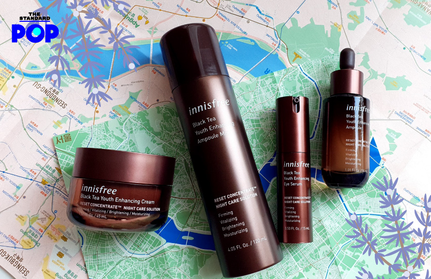หากคุณเป็นคนหนึ่งที่มีไลฟ์สไตล์เต็มที่กับชีวิต เวลาทำงานก็ทุ่มเทอย่างเอาเป็นเอาตาย เวลาเที่ยวก็ขอไปให้สุดแบบไม่เกี่ยงระยะทาง ขอเพียงได้ใช้เวลาทั้งวันอย่างคุ้มค่า ได้ออกกำลัง ได้ทำในสิ่งที่รัก ก็ถือเป็นการเยียวยาความเหนื่อยล้าด้านจิตใจแล้ว ซึ่งคนที่มีพลังทำอะไรเต็มที่แบบนี้ส่วนใหญ่จะอยู่ในช่วงอายุประมาณ 25-39 ปี ซึ่งเป็นวัยที่ยังมีแรง มีพลัง และมีแพสชันทำอะไรสนุกๆ อีกมากมาย แต่ลืมไปหรือเปล่าว่าระหว่างทางที่ใช้ชีวิตอย่างสุดโต่งนั้น บางครั้งงานที่ตั้งใจก็ทำให้เครียด การเดินทางเพื่อแลกมาด้วยประสบการณ์ใหม่ๆ ก็ทำให้เกิดภาวะขาดการนอนหรือพักผ่อนน้อย สิ่งเหล่านี้มีผลกระทบโดยตรงต่อผิวพรรณอย่างเลี่ยงไม่ได้ นั่นเป็นเหตุผลหลักที่ทำให้แบรนด์ Innisfree โฟกัสคนกลุ่มนี้มากเป็นพิเศษ จนเป็นที่มาของไอเท็มใหม่ล่าสุดรับปี 2021 อย่าง Black Tea Youth Enhancing Ampoule ที่สร้างมาเพื่อช่วยชะลอวัยและต้านอนุมูลอิสระสำหรับวัย 25-39 ปี โดยเฉพาะ THE STANDARD POP จึงจะพาทุกคนไปรู้จักไอเท็มใหม่นี้ด้วยกัน