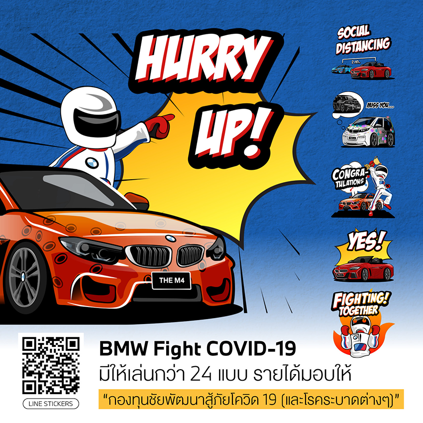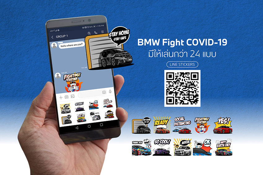 หากดูจากสถิติช่วง 7 วันที่ผ่านมาจนถึงวันนี้ (9 พฤษภาคม 2563) ตัวเลขผู้ป่วยมีแนวโน้มลดลง เชื่อว่าอีกไม่นานประเทศไทยจะกลับมาเดินหน้าได้ต่อ แต่ระหว่างที่เรายังต้องปฏิบัติหน้าที่พลเมืองไทยให้ความร่วมมือ #StayHome แบบ #StaySafe บีเอ็มดับเบิลยู ประเทศไทย จึงอยากให้คนไทยอยู่บ้านแบบไม่เหงา ชวนกันสร้างรอยยิ้มและความสนุกให้กับคนรอบตัว จึงจัดทำสติกเกอร์น่ารักๆ ‘BMW Fight COVID-19’ มาให้โหลดกัน โดยรายได้ครั้งนี้จะนำไปร่วมทำบุญมอบให้ ‘กองทุนชัยพัฒนาสู้ภัยโควิด 19 (และโรคระบาดต่างๆ)’ ซึ่งเป็นอีกหนึ่งแนวทางการช่วยเหลือสังคมของ BMW ที่ทำมาโดยตลอด