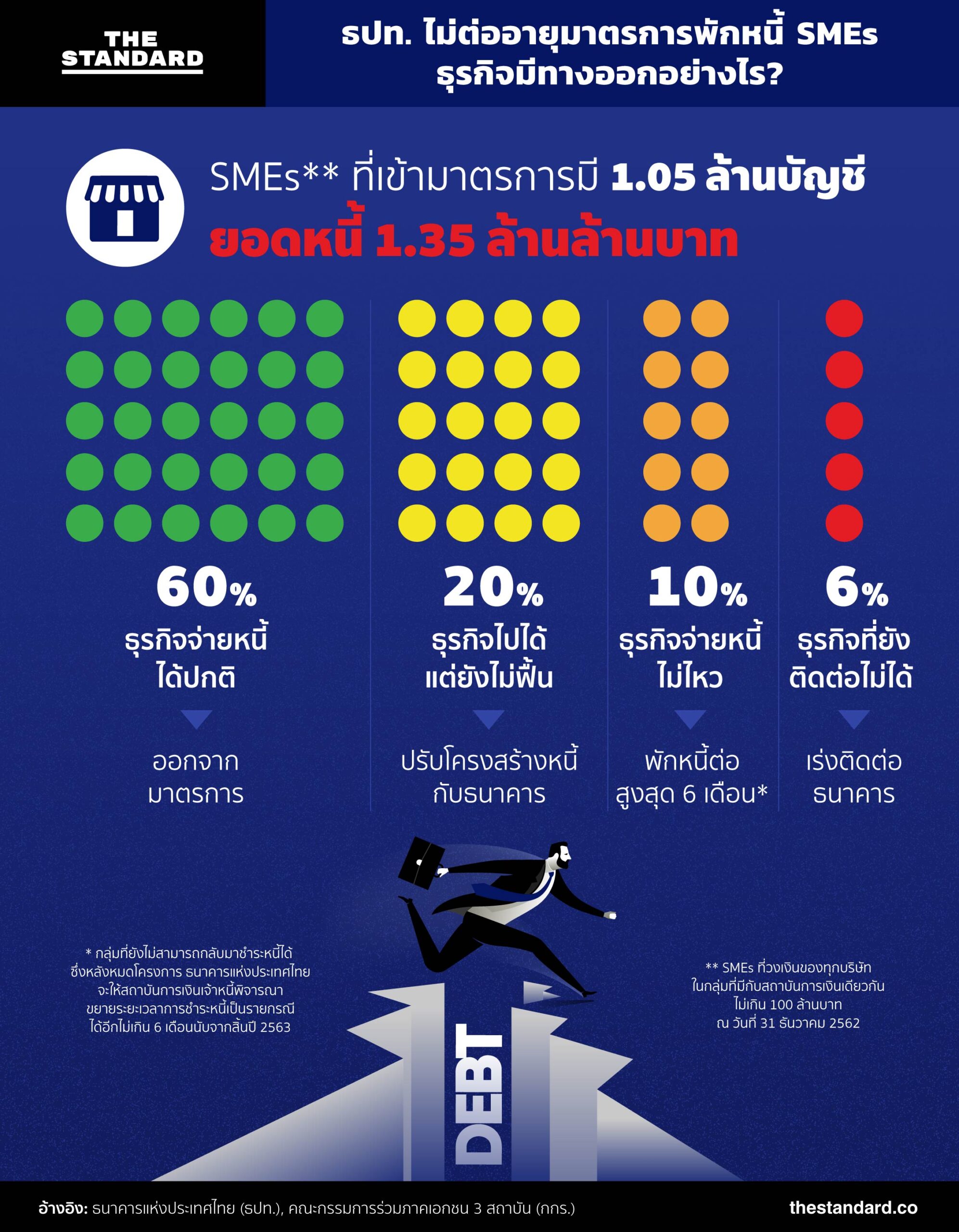 ในวันที่ 22 ตุลาคม 2563 มาตรการช่วยเหลือ SMEs เช่น การพักชำระหนี้เงินต้นและดอกเบี้ย 6 เดือนกำลังจะสิ้นสุดลง แต่เมื่อเศรษฐกิจยังไม่ฟื้น ธุรกิจก็ยังลุกขึ้นไม่ได้ ทางออกของ SMEs ที่ธนาคารแห่งประเทศไทยออกแบบไว้เป็นอย่างไร?
