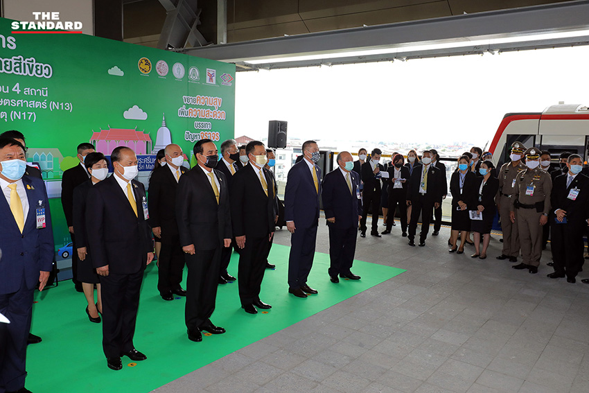 วันนี้ (5 มิถุนายน) เวลา 09.00 น. ณ บริเวณสถานีรถไฟฟ้าบีทีเอสห้าแยกลาดพร้าว เขตจตุจักร พล.ต.อ. อัศวิน ขวัญเมือง ผู้ว่าราชการกรุงเทพมหานคร ให้การต้อนรับพล.อ. ประยุทธ์ จันทร์โอชา นายกรัฐมนตรี ในโอกาสตรวจเยี่ยมและทดสอบความพร้อมการให้บริการเดินรถโครงการรถไฟฟ้าสายสีเขียว ช่วงหมอชิต-สะพานใหม่-คูคต เพิ่มเติมจำนวน 4 สถานี จากสถานีกรมป่าไม้ถึงสถานีวัดพระศรีมหาธาตุ เพื่ออำนวยความสะดวกแก่ประชาชน และบรรเทาปัญหาการจราจรติดขัดบริเวณถนนพหลโยธินและถนนวิภาวดีรังสิต โดยมี ศิลปสวย ระวีแสงสูรย์ ปลัดกรุงเทพมหานคร คณะรัฐมนตรี ผู้บริหารกรุงเทพมหานคร ประธานสภากรุงเทพมหานคร ผู้บริหารการรถไฟฟ้าขนส่งมวลชนแห่งประเทศไทย (รฟม.) ผู้บริหารบริษัท กรุงเทพธนาคม จำกัด ผู้บริหารบริษัท ระบบขนส่งมวลชนกรุงเทพ จำกัด (มหาชน) (BTSC) ผู้บริหารกรมการขนส่งทางราง กองบัญชาการตำรวจนครบาล และผู้เกี่ยวข้อง ให้การต้อนรับและร่วมตรวจเยี่ยม โอกาสนี้นายกรัฐมนตรีและคณะโดยสารรถไฟฟ้าจากสถานีห้าแยกลาดพร้าวไปยังสถานีวัดพระศรีมหาธาตุ ก่อนเปิดให้ประชาชนใช้บริการอย่างเป็นทางการในเวลา 13.30 น. โดยจะให้ทดลองนั่งฟรีจนกว่าจะมีประกาศแจ้งเปลี่ยนแปลง