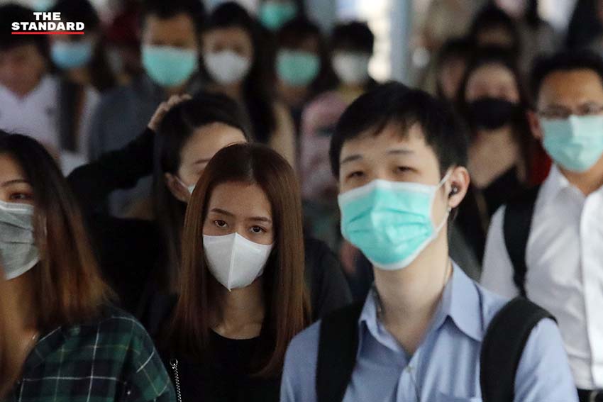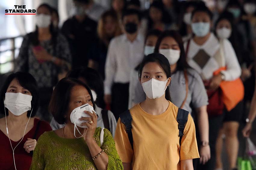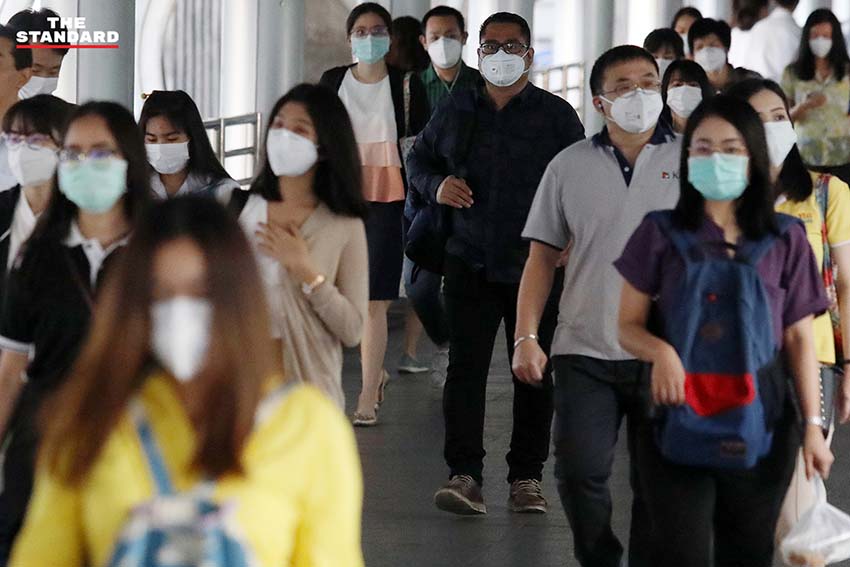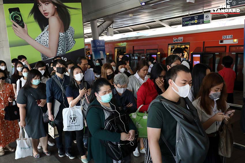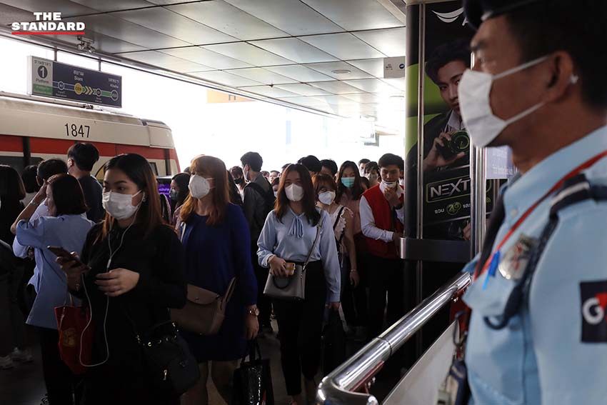 วันนี้ (27 มกราคม) บรรยากาศช่วงเช้าบนสะพานลอยของรถไฟฟ้า BTS เต็มไปด้วยภาพผู้คนสวมหน้ากากอนามัย ซึ่งจากการสังเกตพฤติกรรมของผู้คนที่เดินทางในเวลาเร่งรีบแบบนี้ พบว่าอัตราสวมหน้ากากอนามัยของประชาชนที่สัญจรผ่านรถไฟฟ้า BTS ช่วงเฝ้าระวังการแพร่ระบาดของโรคจากเชื้อไวรัสโคโรนาสายพันธุ์ใหม่นั้นมีมากกว่าช่วงที่ฝุ่นละอองมีปริมาณสูงในพื้นที่กรุงเทพมหานครอย่างเห็นได้ชัด