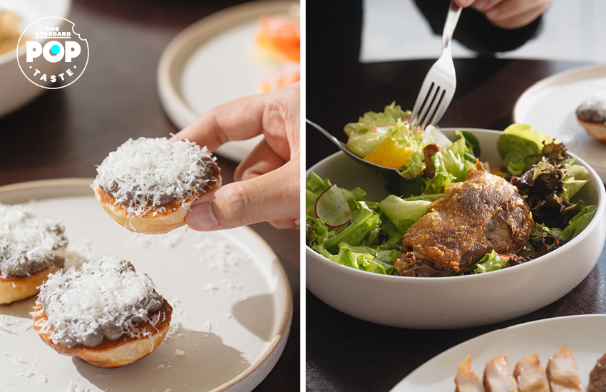 Truffle on Brioche (150 บาท) และ Crispy Duck Salad (220 บาท)