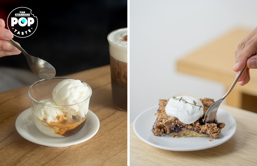 Espresso with Ice Cream (110 บาท) และ Blueberry Crumble (110 บาท)