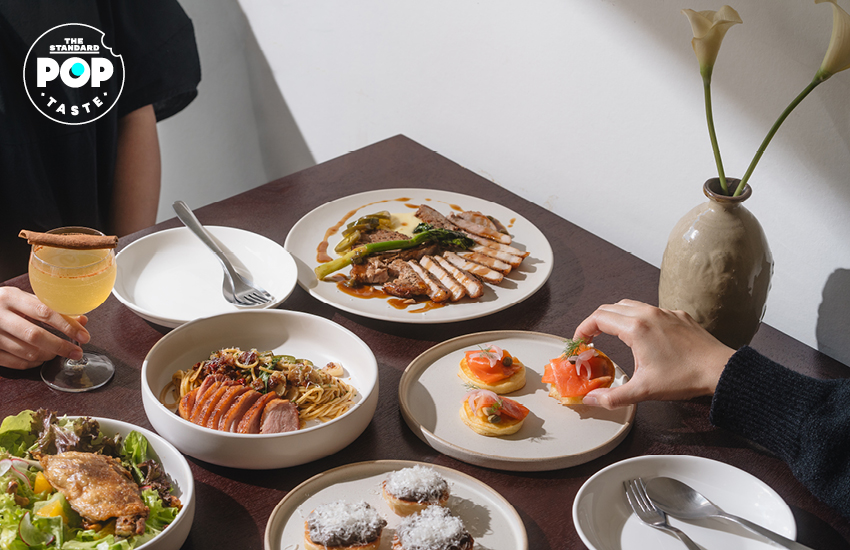 เริ่มที่เมนูอาหารเรียกน้ำย่อย Truffle on Brioche (150 บาท) บริยอชบันที่ทางร้านทำเอง พร้อมครีมทรัฟเฟิลที่กลิ่นชัดเจน ตัดด้วยความเค็มของพาร์เมซานชีสที่ด้านบน เป็นเมนูที่ใครมาเป็นต้องสั่ง ส่วน Pancake Salmon (150 บาท) เป็นแพนเค้กชิ้นเล็กพอดีคำที่ทาด้วยครีมชีส ท็อปด้วยแซลมอนรมควัน เพิ่มรสชาติด้วยหอมแดงดอง เคเปอร์ และผักชีฝรั่ง ส่วน Crispy Duck Salad (220 บาท) สลัดของทางร้านก็น่าสนใจทีเดียว เพราะเป็นสลัดที่ผักสลัดหมุนเวียนเปลี่ยนไปตามที่ทางร้านจะได้วัตถุดิบมา กินคู่กับเป็ดกงฟีที่กรอบนอกนุ่มใน เพิ่มรสชาติด้วยส้ม น้ำสลัดญี่ปุ่น และเม็ดมะม่วงหิมพานต์