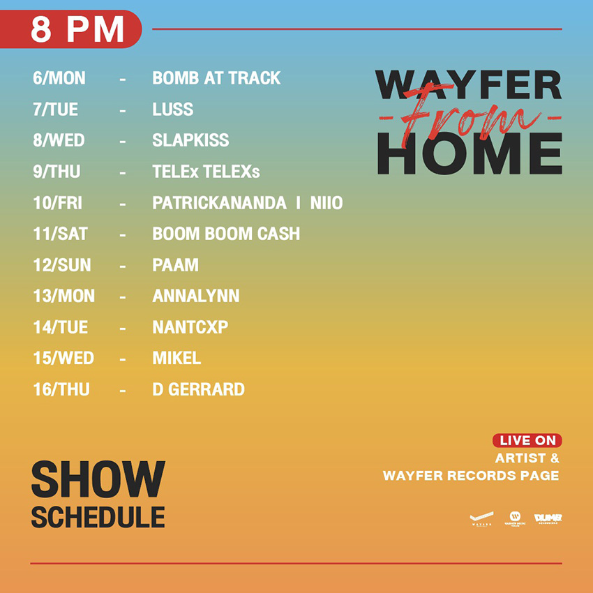 What: ไลฟ์จากศิลปินในค่าย Wayfer Records ที่จะมาพูดคุย ตอบข้อสงสัยแบบสดๆ กับคุณตลอดทั้งสัปดาห์ จดคิวศิลปินวงโปรดของคุณไว้ และเข้าไปคุยกับพวกเขาได้เลย