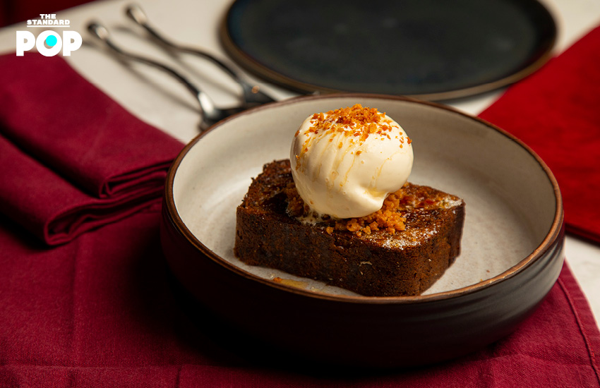 เรื่องรสชาติความหวาน-เค็ม อย่าให้มาเป็นตัวกำหนดว่าของหวานจำต้องหวานล้วนเสมอไป ดูอย่าง Banana Bread & Bacon (360 บาท) เชฟแดนตีความเค้กกล้วยหอมรูปแบบใหม่ เนื้อแน่นขึ้น มาแบบอุ่นกำลังดี จับคู่กับเบคอนและไอศกรีม ราดรัมเมเปิ้ลไซรัป กินทุกองค์ประกอบ ตักอย่างละนิดเข้าปาก ให้รสเค็มกับรสหวานตัดกันไปมา นี่แหละขนมที่กินแล้วสนุก แถมยังอร่อยไม่แพ้จานหลักทีเดียว