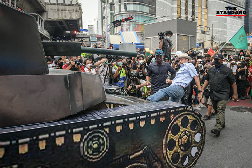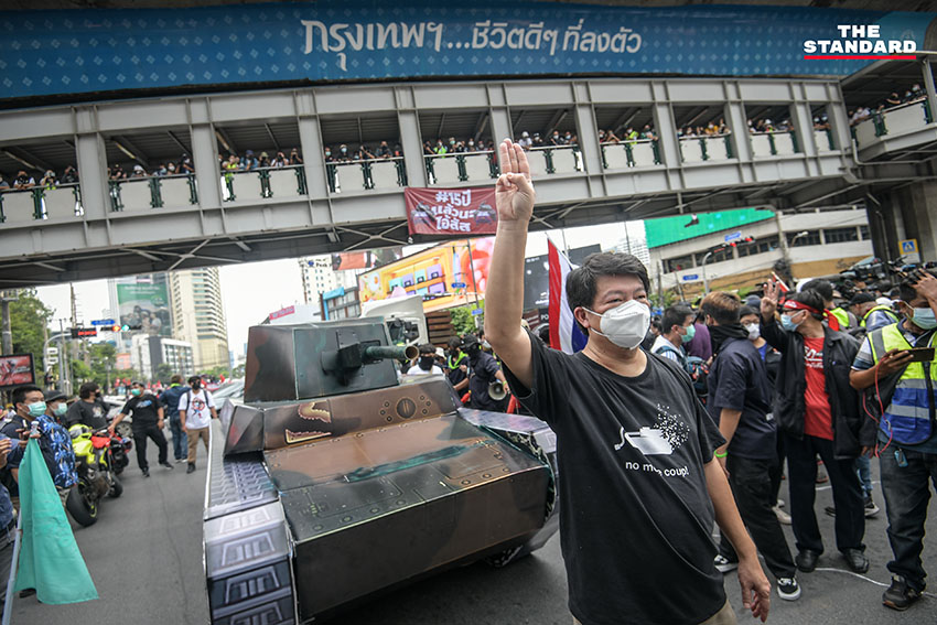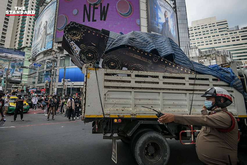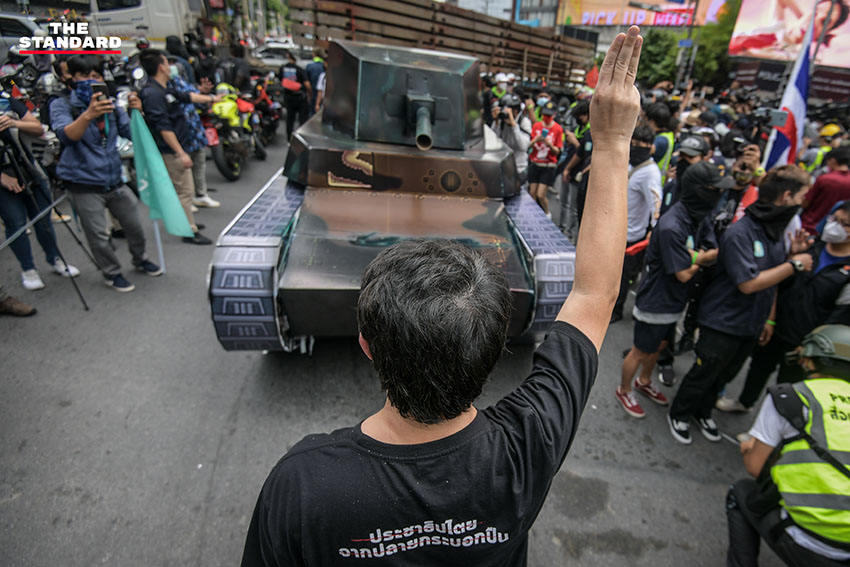 THE STANDARD พาทุกคนมาชมบรรยากาศกิจกรรมการชุมนุมบริเวณแยกอโศก ก่อนที่ขบวนคาร์ม็อบจะมุ่งหน้าไปสู่อนุสาวรีย์ประชาธิปไตย สถานที่ซึ่งเป็นหมุดหมายเชิงสัญลักษณ์ของนักต่อสู้เพื่อประชาธิปไตย แม้จะผ่านเหตุการณ์นั้นมาแล้ว 15 ปี