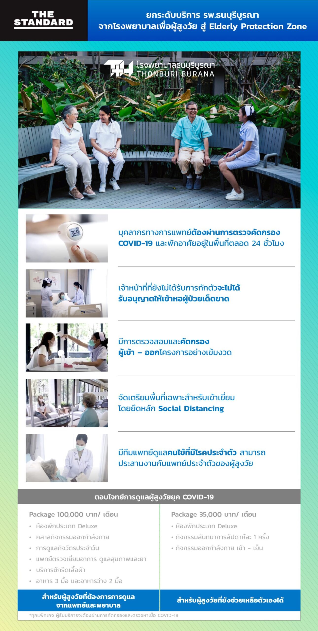 เพื่อให้โรงพยาบาลแห่งนี้เป็น Protection Zone ปกป้องผู้สูงวัยได้อย่างมั่นใจ นอกจากการจัดสรรพื้นที่ โดยยึดหลักเว้นระยะห่างทางสังคม หรือ Social Distancing และการตรวจสอบคัดกรองผู้เข้า-ออกที่เป็นมาตรการขั้นพื้นฐานแล้ว