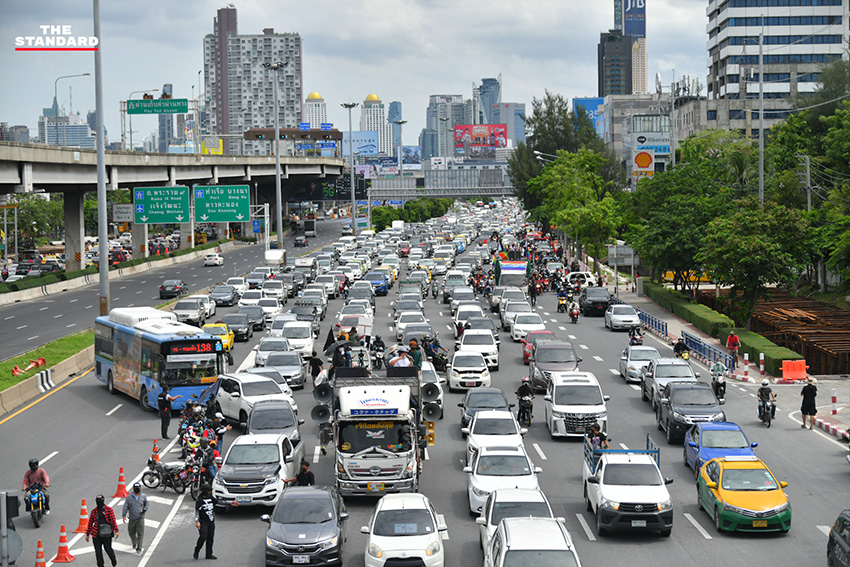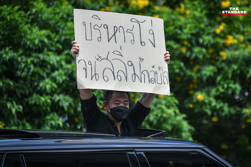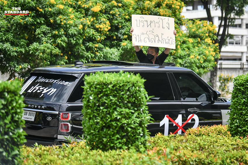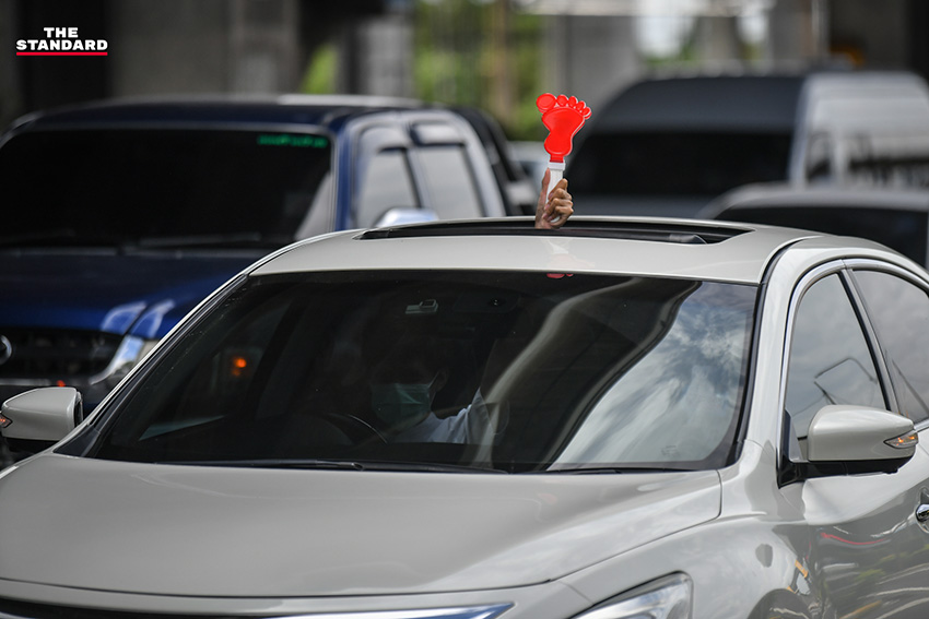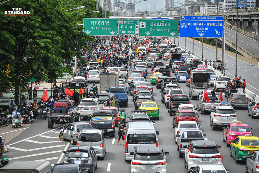 วันนี้ (1 สิงหาคม) ตั้งแต่เวลา 13.20 น. บริเวณประตูทางออก 6 สนามบินดอนเมือง กลุ่มมวลชนที่เดินทางมาร่วมกิจกรรมชุมนุมขับไล่ พล.อ. ประยุทธ์ จันทร์โอชา นายกรัฐมนตรี ในรูปแบบคาร์ม็อบภายใต้ชื่อกิจกรรม ‘ถนนทุกสายมุ่งสู่กรุงโรม’ (วิภาวดี-รังสิต) โดย สมบัติ บุญงามอนงค์ หรือ บก.ลายจุด แกนนำผู้จัดคาร์ม็อบ และเคลื่อนขบวนออกจากจุดนัดหมายไปตามถนนวิภาวดีรังสิต