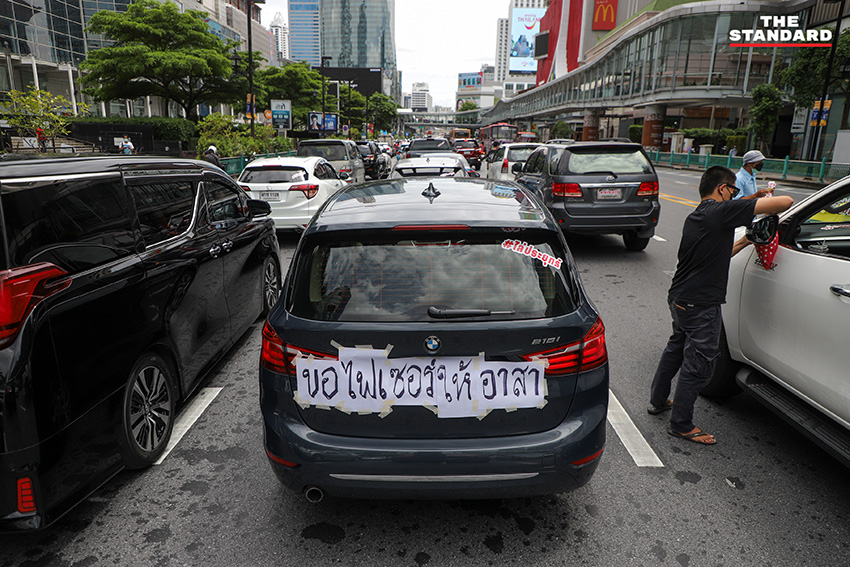 บรรยากาศที่แยกราชประสงค์มีรถเริ่มรวมตัวตามเวลานัดหมายเวลา 11.00 น. มีการแจกสติกเกอร์ที่มีข้อความว่า ‘#ไล่ประยุทธ์’ เบื้องต้นขบวนจะวิ่งตรงไปทางแยกประตูน้ำ แยกราชปรารภ เบี่ยงซ้ายเข้าถนนวิภาวดี-รังสิต วนไปเข้าหน้าสนามบินดอนเมือง และกลับมาเส้นทางเดิมอีกครั้ง
