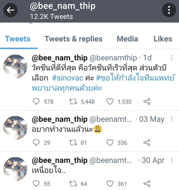 เจ้าตัวยืนยันว่าไปฉีดเองเพราะอยู่ในพื้นที่เสี่ยง และใช้เวลาถึง 3 ชั่วโมงเขียนรีวิวนี้ด้วยความตั้งใจ แต่ก็ยังทำให้เกิดอาการ ‘เอ๊ะ…’ เพราะจังหวะเวลาอันประจวบเหมาะกับโครงการนำร่องของราชวิทยาลัยจุฬาภรณ์ ที่ให้ดารานักแสดงและครอบครัวฉีดวัคซีน เพื่อประชาสัมพันธ์และสร้างความมั่นใจให้กับประชาชน พร้อมข้อความทำนองเลือกแล้วว่าดีอย่าง บี-น้ำทิพย์ จงรัชตวิบูลย์ ที่ทวีตว่า “วัคซีนที่ดี่ที่สุด คือวัคซีนที่เร็วที่สุด ส่วนตัวบีเลือก #sinovac ค่ะ #ขอให้กำลังใจทีมแพทย์พยาบาลทุกคนด้วยค่ะ” มันทำให้เกิดคำถามว่าถ้ามีวัคซีนตัวอื่นให้เลือกมากกว่านี้ คำตอบของบีจะเป็นแบบนี้ไหม ซึ่งถ้าใช่เราก็เคารพการตัดสินใจของบี