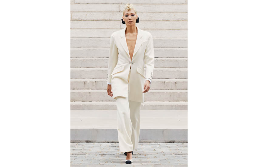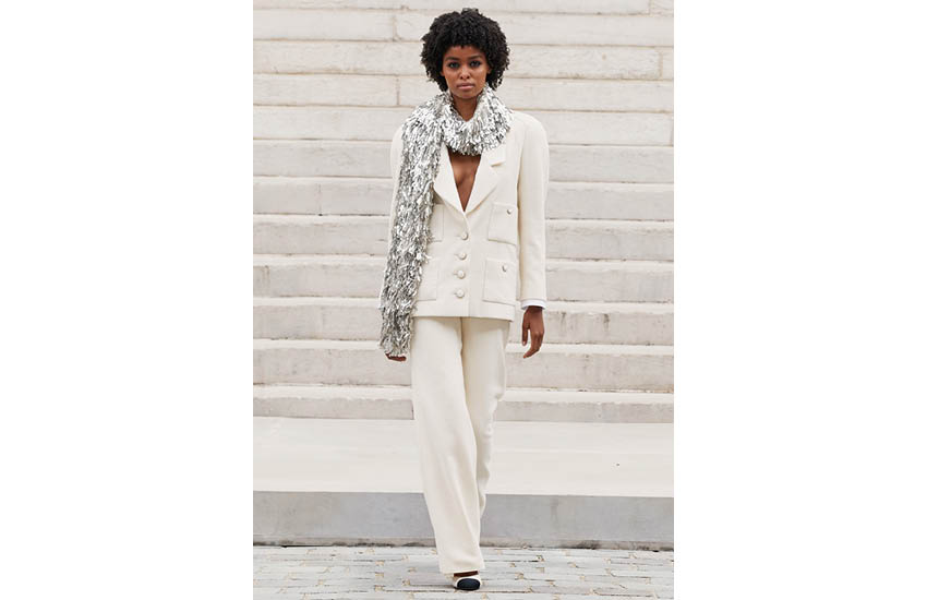 แม้สำหรับคอลเล็กชันกูตูร์หลายคนอาจจะสนใจและตื่นเต้นกับบรรดาชุดราตรีสุดตระการตาและฟูฟ่องแบบที่แบรนด์แอมบาสเดอร์ของ Chanel อย่าง มาร์โกต์ ร็อบบี้, คริสเตน สจวร์ต และ เพเนโลเป ครูซ คงเตรียมอยากใส่ไปงานเทศกาลหนังเมือคานส์ที่เพิ่งเริ่มเมื่อวานเป็นวันแรก แต่สำหรับเราแล้ว ไอเท็มที่เตะตามากสุดต้องยกให้สูทสีครีม 3 ลุคที่ออกมาติดต่อกันช่วงกลางโชว์ ที่สง่าและมีความคลาสสิกแบบที่ผู้หญิงทุกรูปแบบสามารถใส่ได้ ตั้งแต่ผู้นำประเทศ คามาลา แฮร์ริส และ จาซินดา อาร์เดิร์น จนถึงนักร้องอย่างริฮานนาและนักแสดงเซนดายา