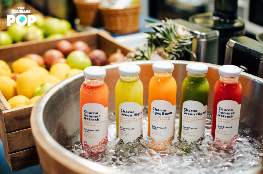 หากวันไหนที่คุณเร่งรีบ คุณก็สามารถแวะซื้อ น้ำผักผลไม้สกัดเย็น (95-135 บาท) ที่ด้านหน้าของร้านได้ คุณค่าจากผักและผลไม้สูงกว่าน้ำผลไม้ปกติถึง 5 เท่า ช่วยให้ร่างกายดูดซึมไปใช้งานได้ง่าย มีหลากหลายสูตรให้เลือก ทั้งสูตรลดความดัน สูตรคลายร้อน สูตรผิวสวยใส สูตรหลับสบาย สูตรบำรุงสายตา และสูตรอื่นๆ อีกมากมาย