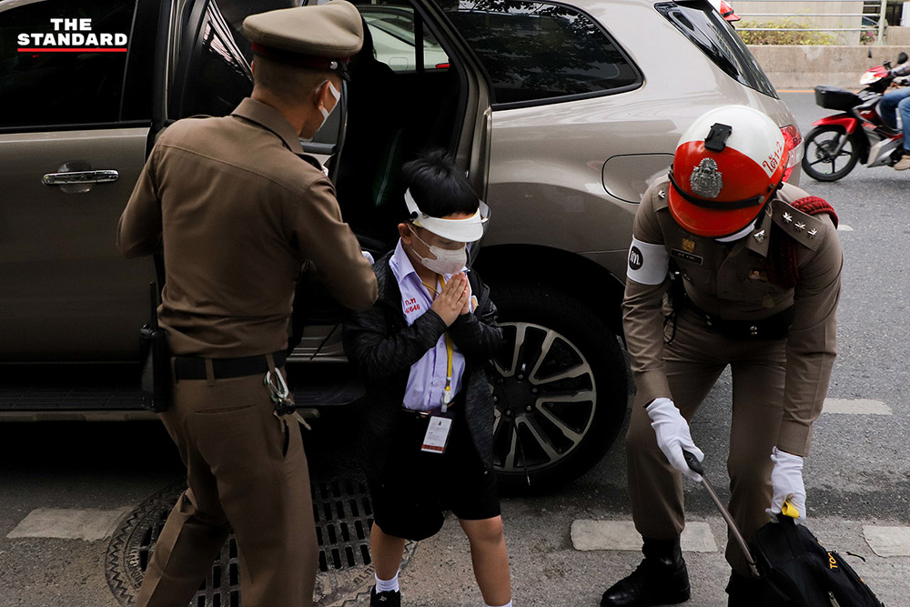ขณะที่บรรยากาศหน้าโรงเรียนกรุงเทพคริสเตียน มีเจ้าหน้าที่ช่วยอำนวยความสะดวกนักเรียนและผู้ปกครองที่มาส่งนักเรียนหน้าโรงเรียน การจราจรมีรถเยอะ แต่เคลื่อนตัวได้ มีติดขัดบ้างบางช่วง ผู้ปกครองช่วยตรวจเช็กความเรียบร้อยของเฟซชิลด์และหน้ากากอนามัย รวมถึงกระเป๋าและเครื่องแต่งกายต่างๆ ให้นักเรียนก่อนเข้าโรงเรียน