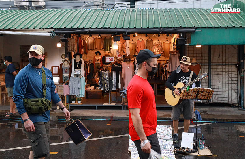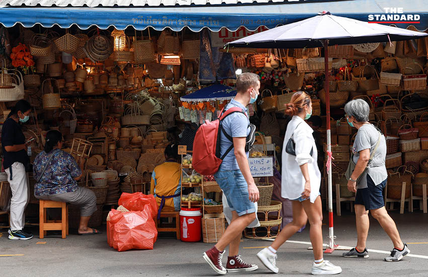‘ตลาดจตุจักร’ ถือเป็นอีกหนึ่งหมุดหมายการเดินทางท่องเที่ยวของนักท่องเที่ยวต่างชาติ ซึ่งตลาดแห่งนี้มีทั้งของกิน ของใช้ ของหายาก ของสะสม และของที่ระลึกที่สามารถติดไม้ติดมือถือกลับบ้านได้ โดยวันนี้ (30 ตุลาคม) ช่างภาพของ THE STANDARD ลงพื้นที่สำรวจ เริ่มพบเห็นชาวต่างชาติมาเดินซื้อของ ซึ่งจากการสอบถามพบว่าส่วนหนึ่งชาวต่างชาติกลุ่มนี้พักอาศัยอยู่ในประเทศไทยอยู่แล้ว วันนี้เป็นวันหยุดจึงมาเดินเล่นพักผ่อน