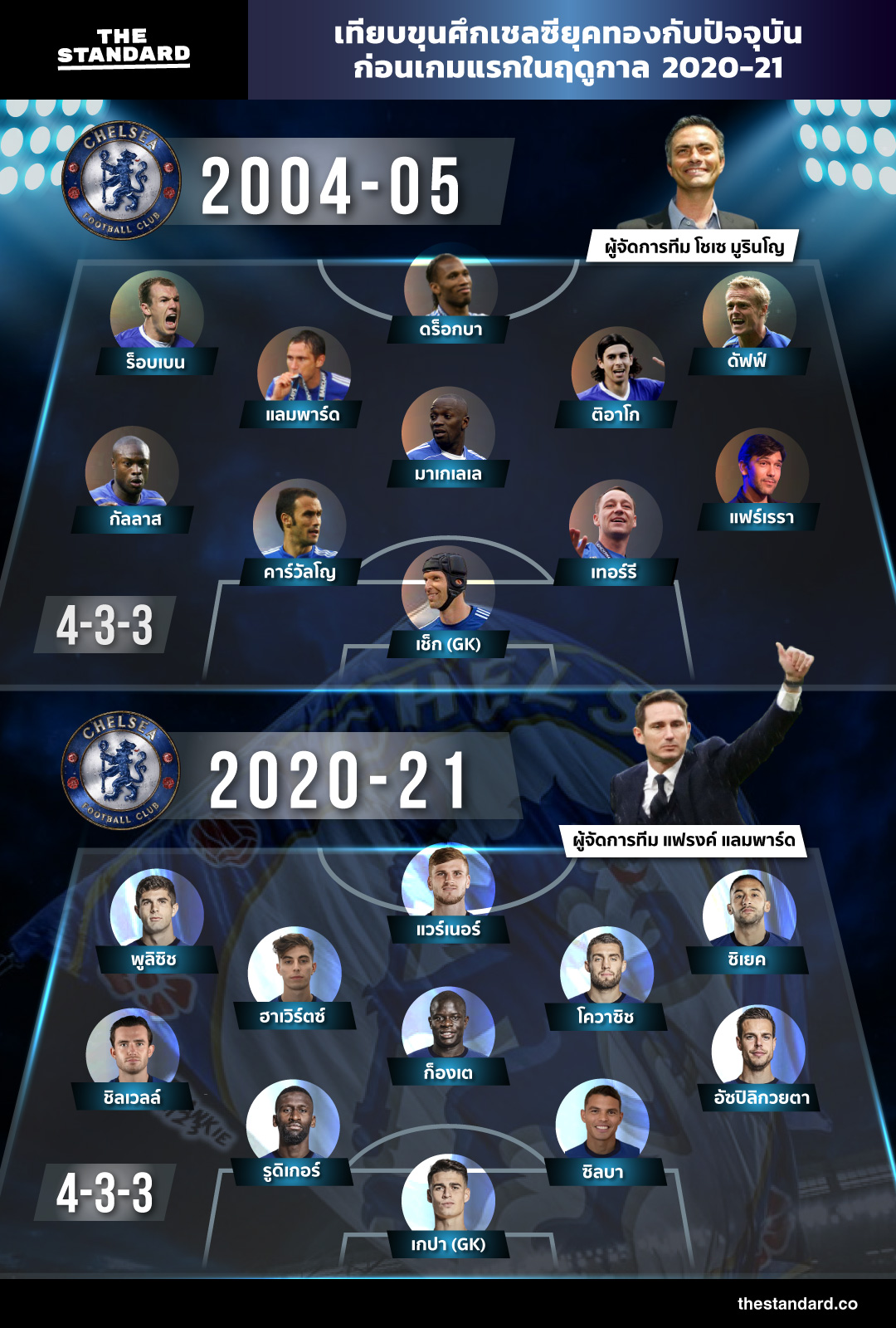 วันนี้ก่อนที่เชลซีจะลงแข่งขันเกมแรกพบกับไบรท์ตันในเกมมันเดย์ไนต์ของฤดูกาล THE STANDARD พาไปเปรียบเทียบทีมชุดปัจจุบันกับทีมชุดที่คว้าแชมป์พรีเมียร์ลีก ฤดูกาล 2004-05 ซึ่งถูกยกให้เป็นหนึ่งในทีมที่ดีที่สุดในรอบทศวรรษ ด้วยสถิติแพ้เพียงแค่เกมเดียวตลอดทั้งฤดูกาล