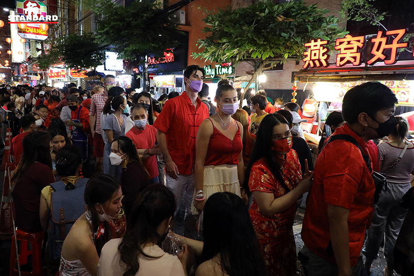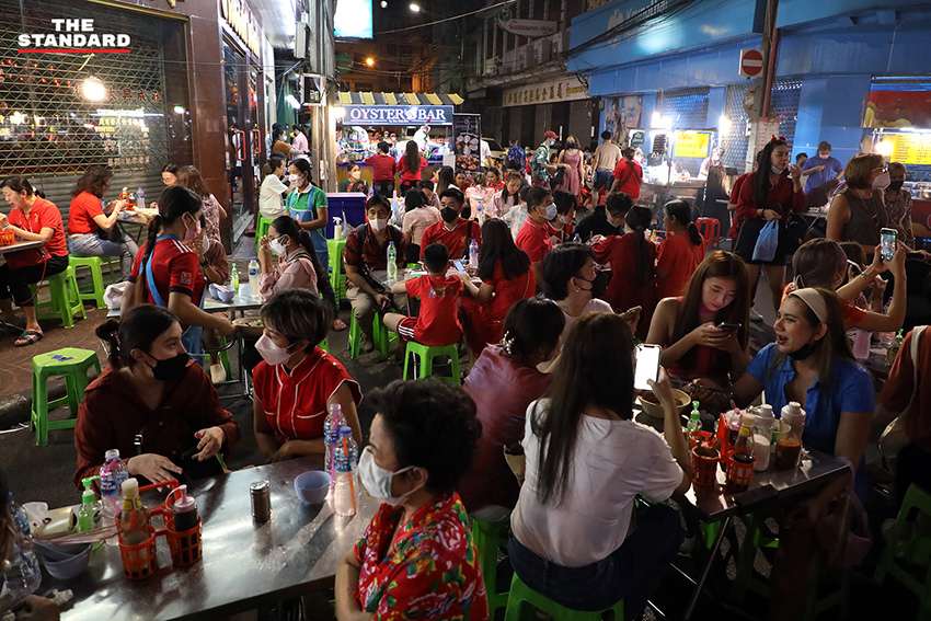 นักท่องเที่ยวทั้งชาวไทยและชาวต่างชาติแต่งกายด้วยชุดสีแดง ซึ่งเป็นสัญลักษณ์ของความสุขและโชคลาภ บางส่วนมาเป็นคู่ ขณะที่บางส่วนมาเป็นครอบครัว จับจองร้านเพื่อรับประทานอาหารร่วมกันในย่านเยาวราช ซึ่งวันนี้วันเที่ยววันตรุษจีน บรรยากาศเป็นไปอย่างคึกคัก TAGS: เยาวราชวันตรุษจีน LOADING... ABOUT THE AUTHOR THE STANDARD TEAM กองบรรณาธิการ THE STANDARD ABOUT THE PHOTOGRAPHER ฐานิส สุดโต บรรณาธิการภาพ ประจำสำนักข่าว THE STANDARD